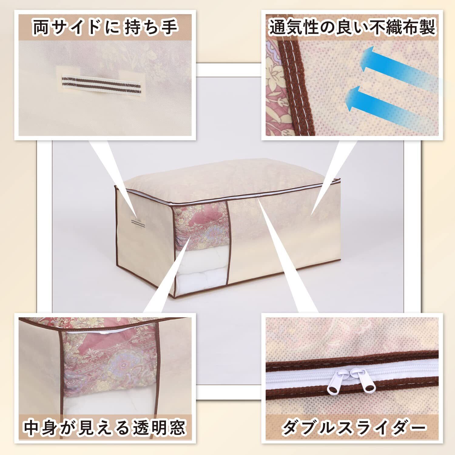 アストロ 布団収納袋 ベージュ シングルサイズ用 布団一式保管 敷き布団 掛け布団 収納ケース 通気性の良い不織布 ふとん保存袋 まとめて収納 ホコリ防止 透明窓 持ち手付き 131-46