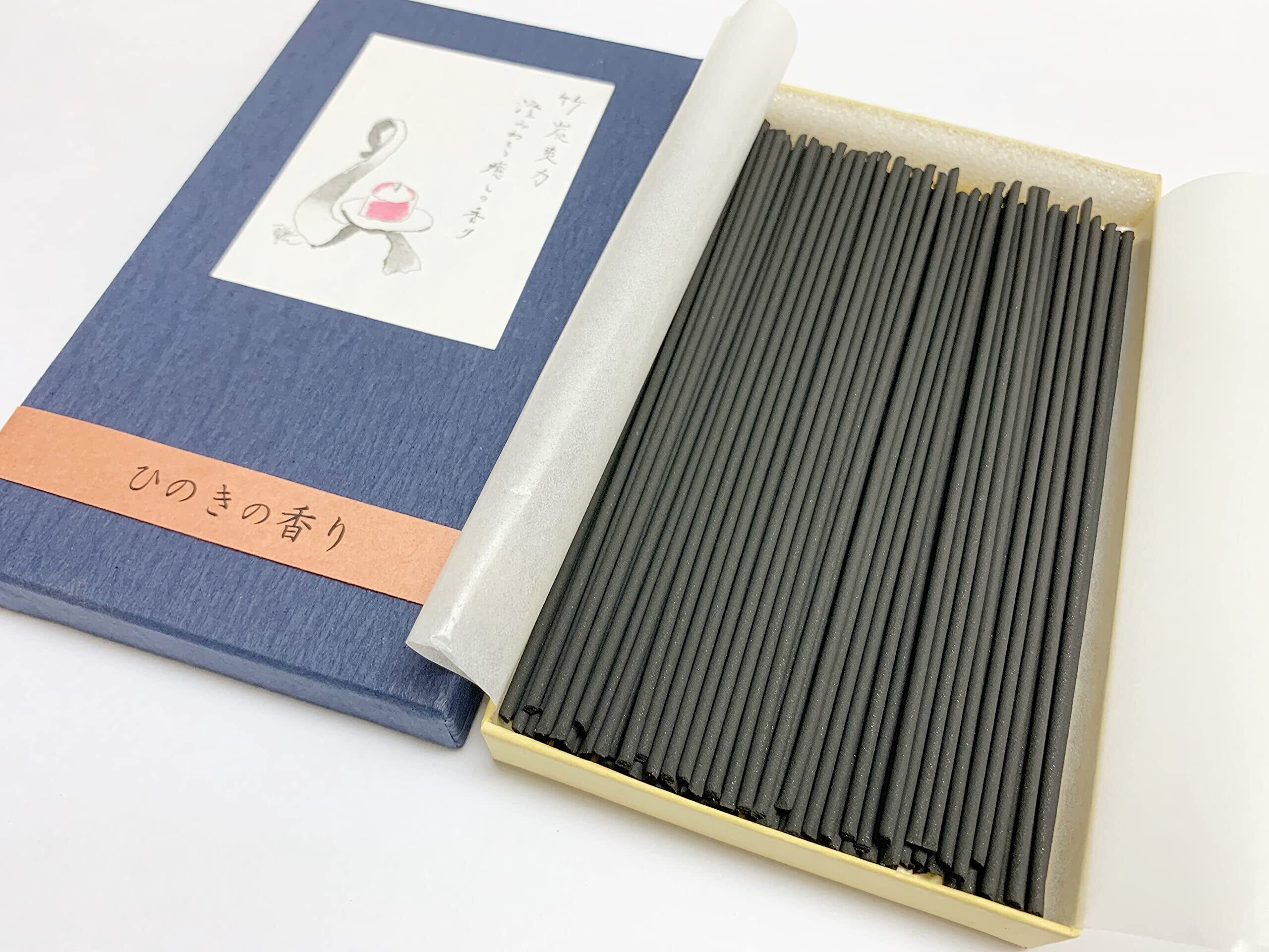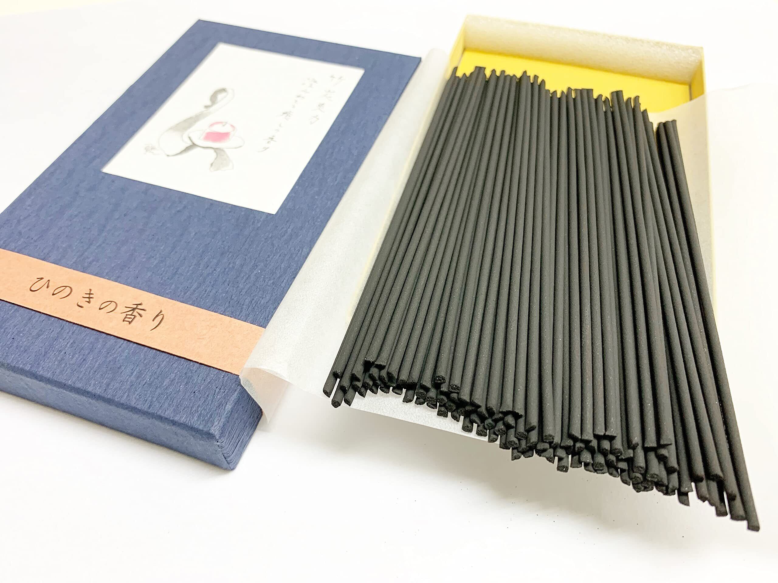 立ててご使用の場合、煙が見えないほど出ないほのかなひのきの香り、竹炭のお線香 お香