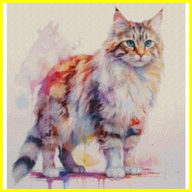 猫の色、パープル、200x200 aida、36x36cm、綿糸、猫クロスステッチキット
