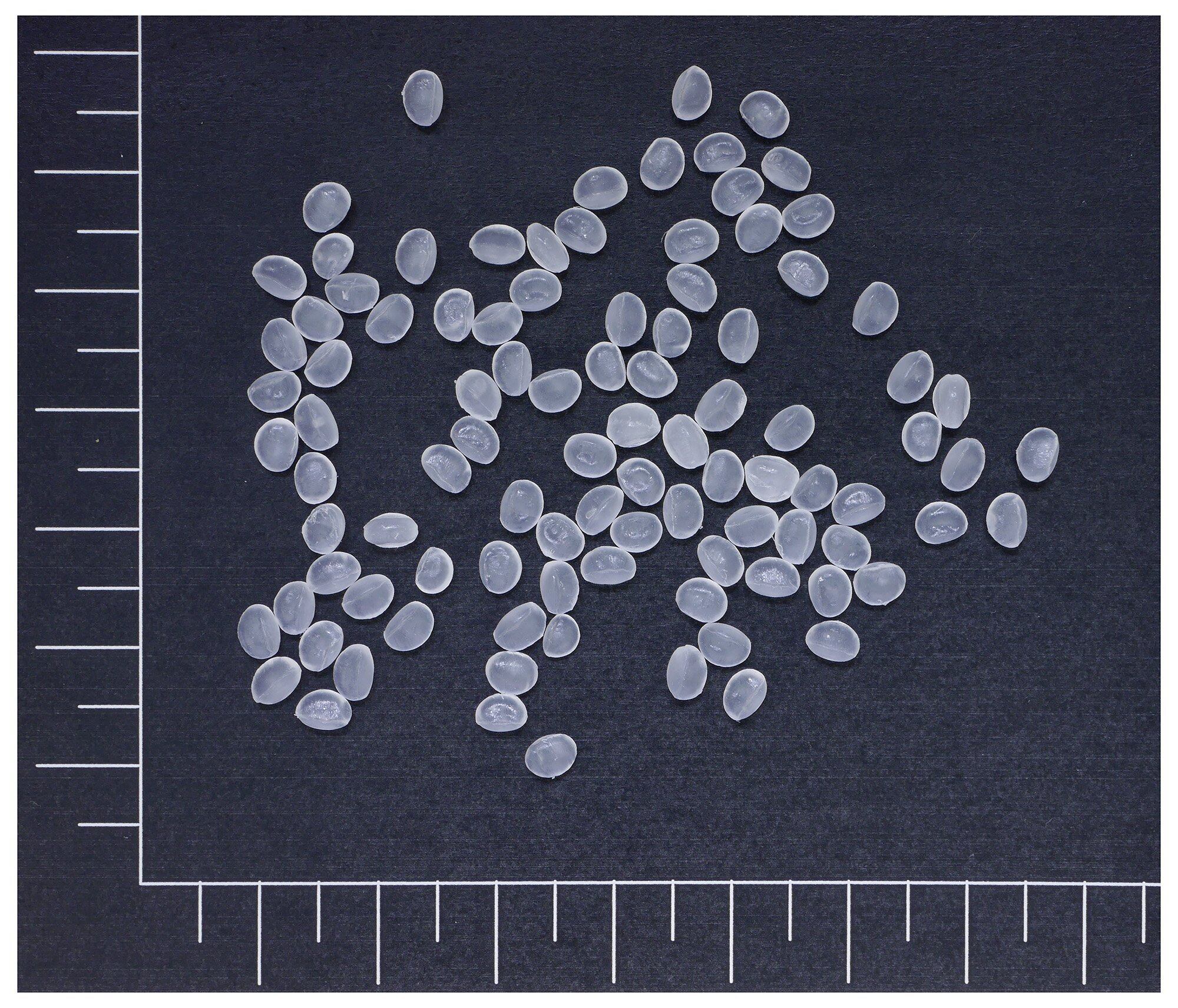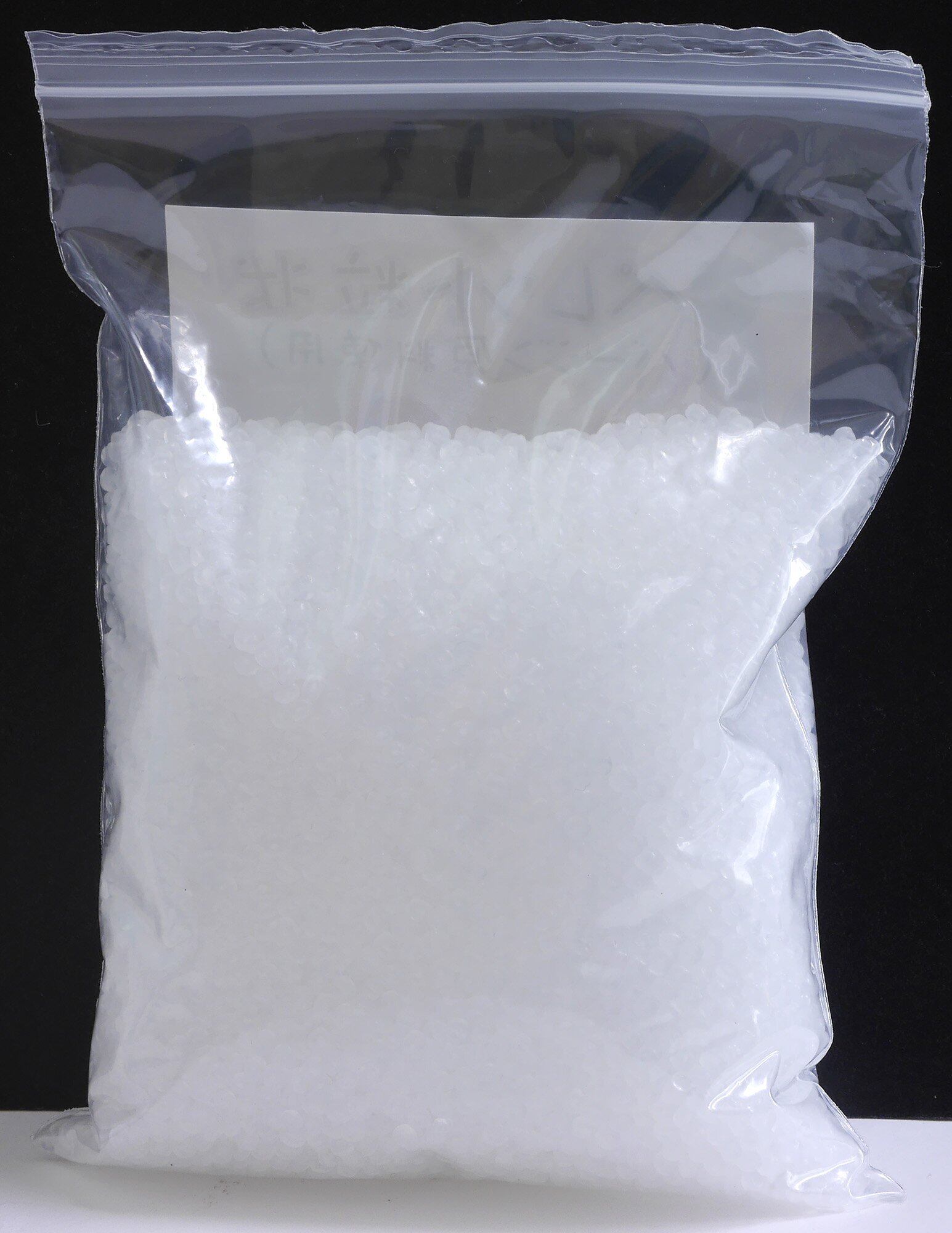 粒状のポリエチレンペレットが容量分入っています