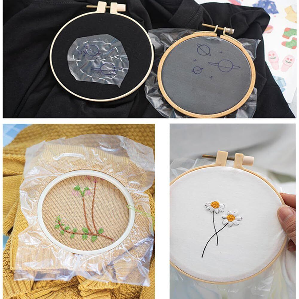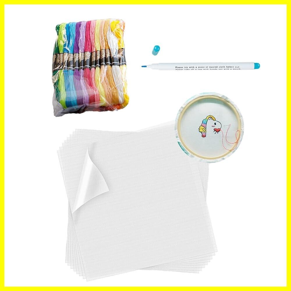 YIXINLYMY 刺しゅう用水溶性シート 刺繍糸 刺繍キット チャコペン (25*25cm刺繍シート*8+刺繍糸*24+チャコペン*1)刺繍用接着芯 透明フィルム 水でとける 縫い糸 手芸用糸 裁縫用チャコペン 下絵シート 推しぬい 手作