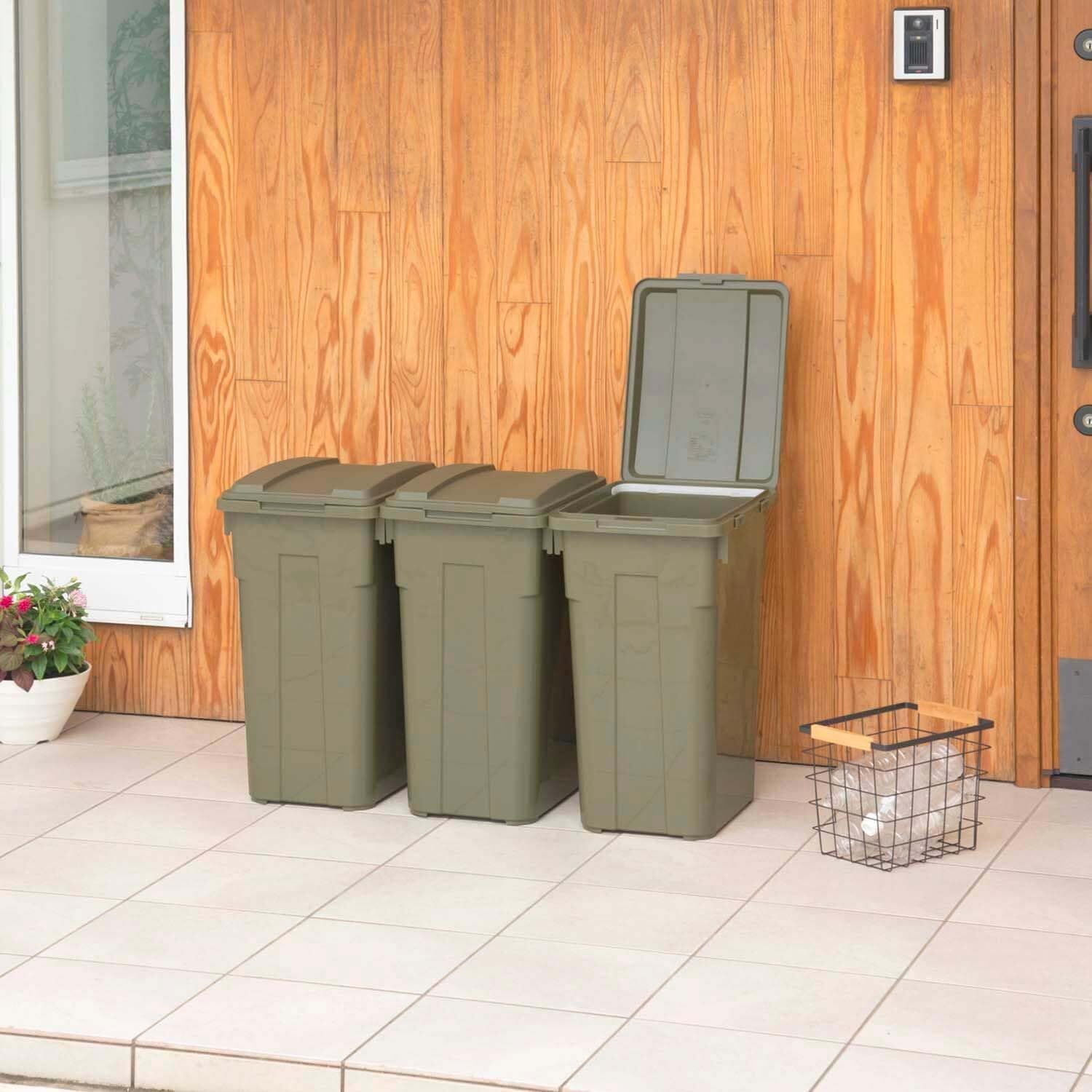 【 限定】 新輝合成(Shinki Gosei) トンボ ゴミ箱 連結可能 45リットル カーキグリーン 3個セット 幅31×奥行39×高さ57.5cm 蓋付き 分別 丈夫 屋外 ベランダ 大きい アウトドア 日本製