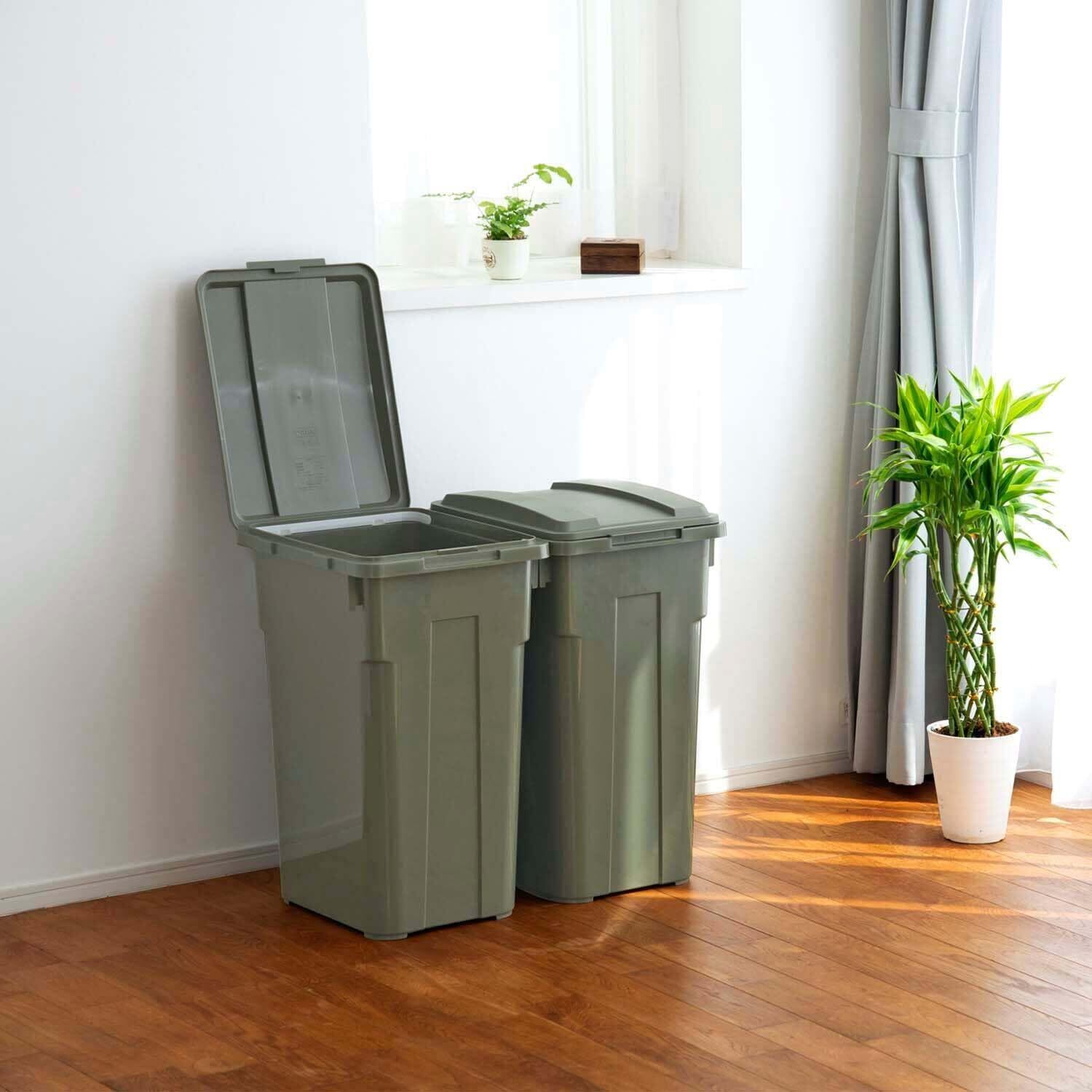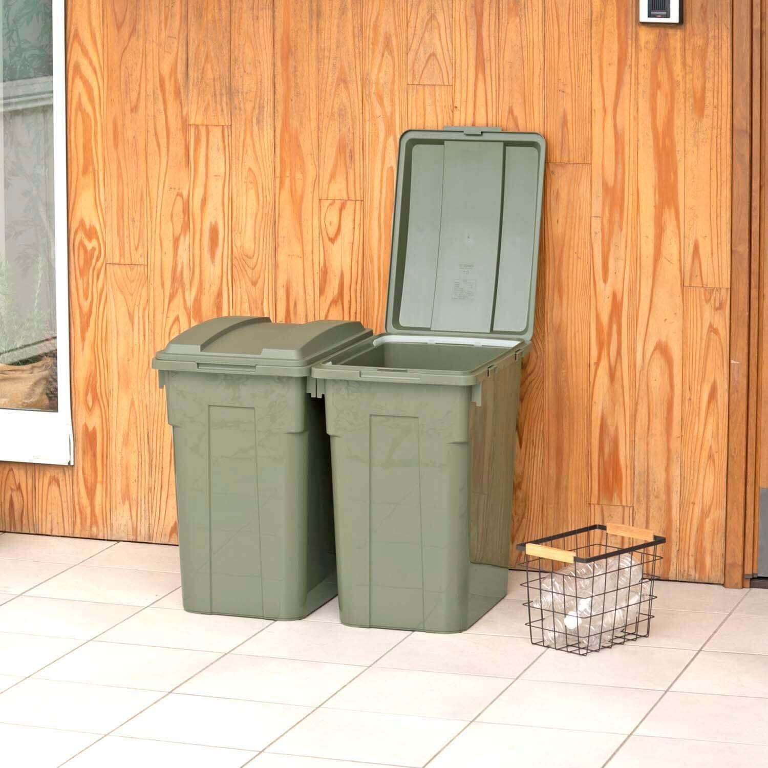 片手で開くことのできる、ワンハンドオープンフタ。フタのカラーでわかりやすく分別できます(カーキベージュ・カーキグリーン)。