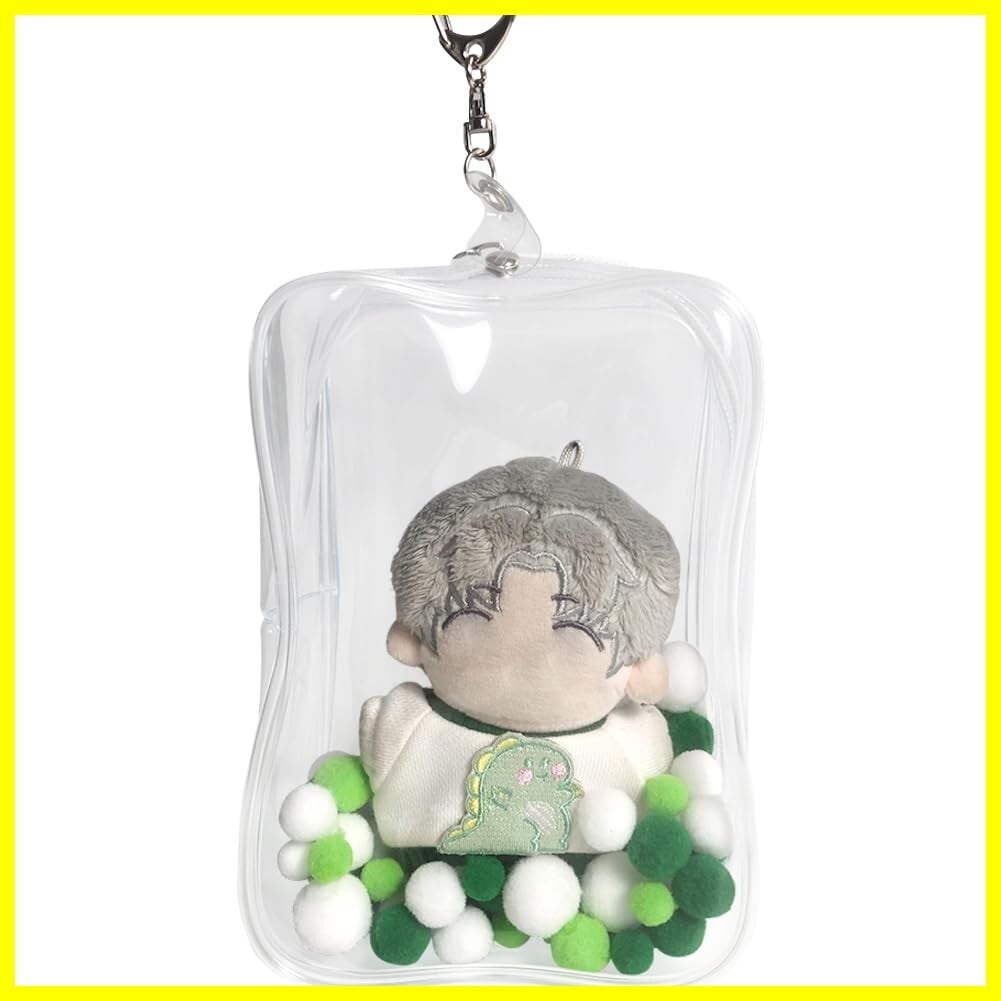 YUYAKESHI OB11 ケース おもちゃ bjd 旅行 透明 ソフト バッグ 痛バ 外出 人形 お出かけ用 キーホルダー ぬいば 防塵 収納(四角・ポンポンボール付・15cm)