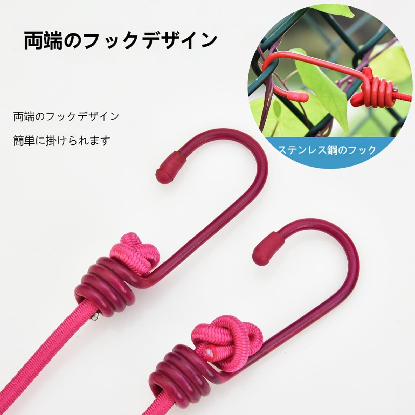 【特徴】弾力のゴム紐は長さを調節できるが調整バックル付きなので、,安心利用できます,pvcの素材が鋼線を包んでいるので、服などに錆がつく心配する必要はありません。