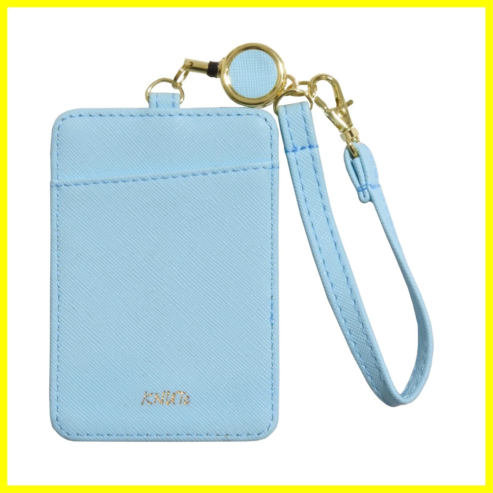 リール付き パスケース 上部取付タイプ (ライトブルー) ストラップ付 IDカードホルダー リール IDカードケース 2枚収納薄い パスケース レディース メンズ ICカード 定期入れ (ライトブルー)