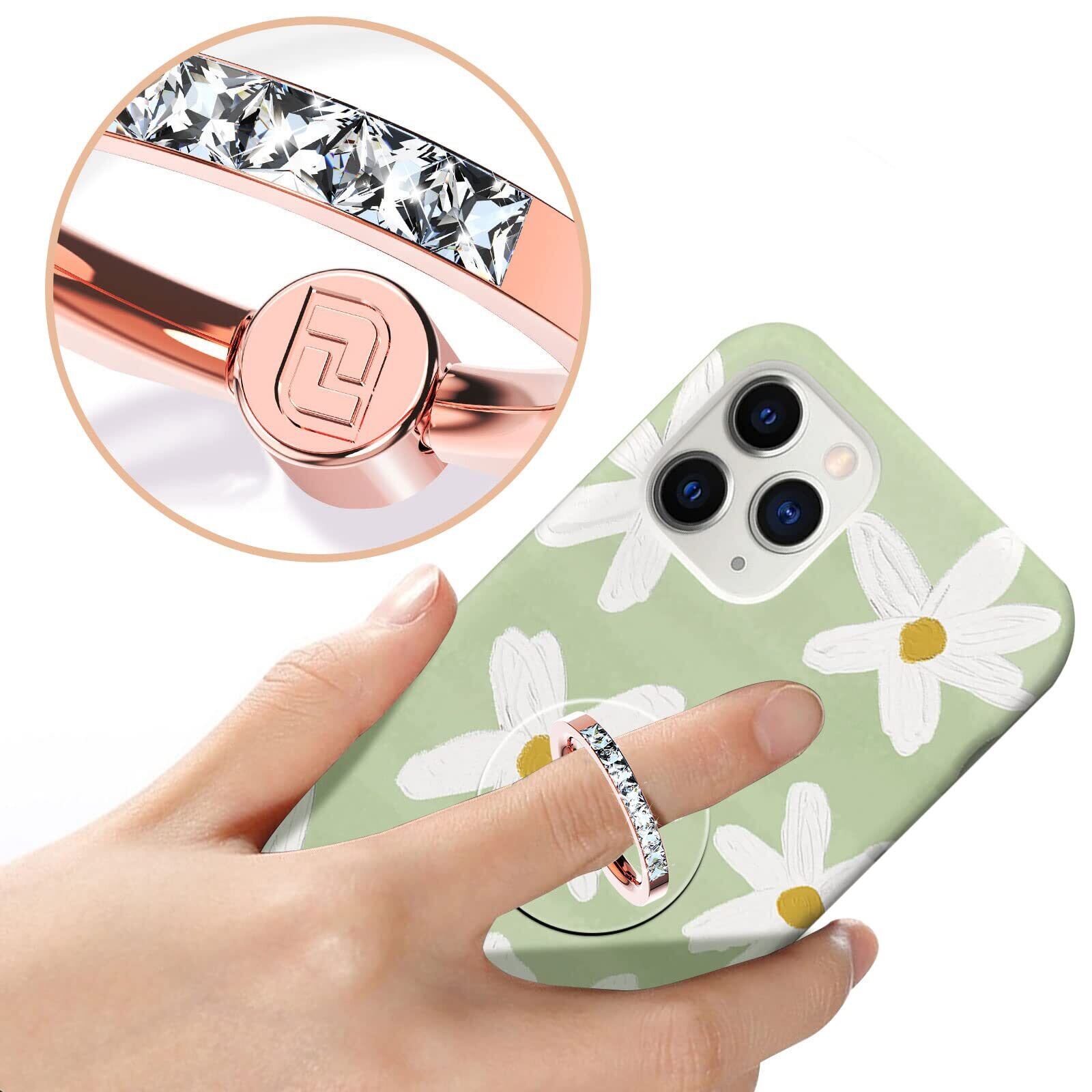 透明 スマホリング 2 個セット Jsoerpay ダイヤモンド 360°回転 バンカーリング 落下防止 指輪型 スタンド機能 ほとんどのスマホ タブレット ケースと互換性あり(ローズゴールド)