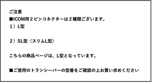 ・アイコムのL型2ピンタイプの機種に、対応のイヤホンマイクです