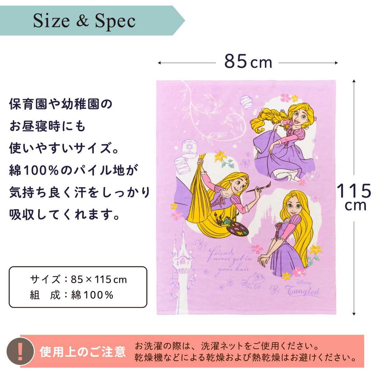 un doudou ベビー タオルケット 85×115cm Disney 塔の上のラプンツェル 表側ガーゼ 裏側パイル地 綿100% パープル NZ1810-TA