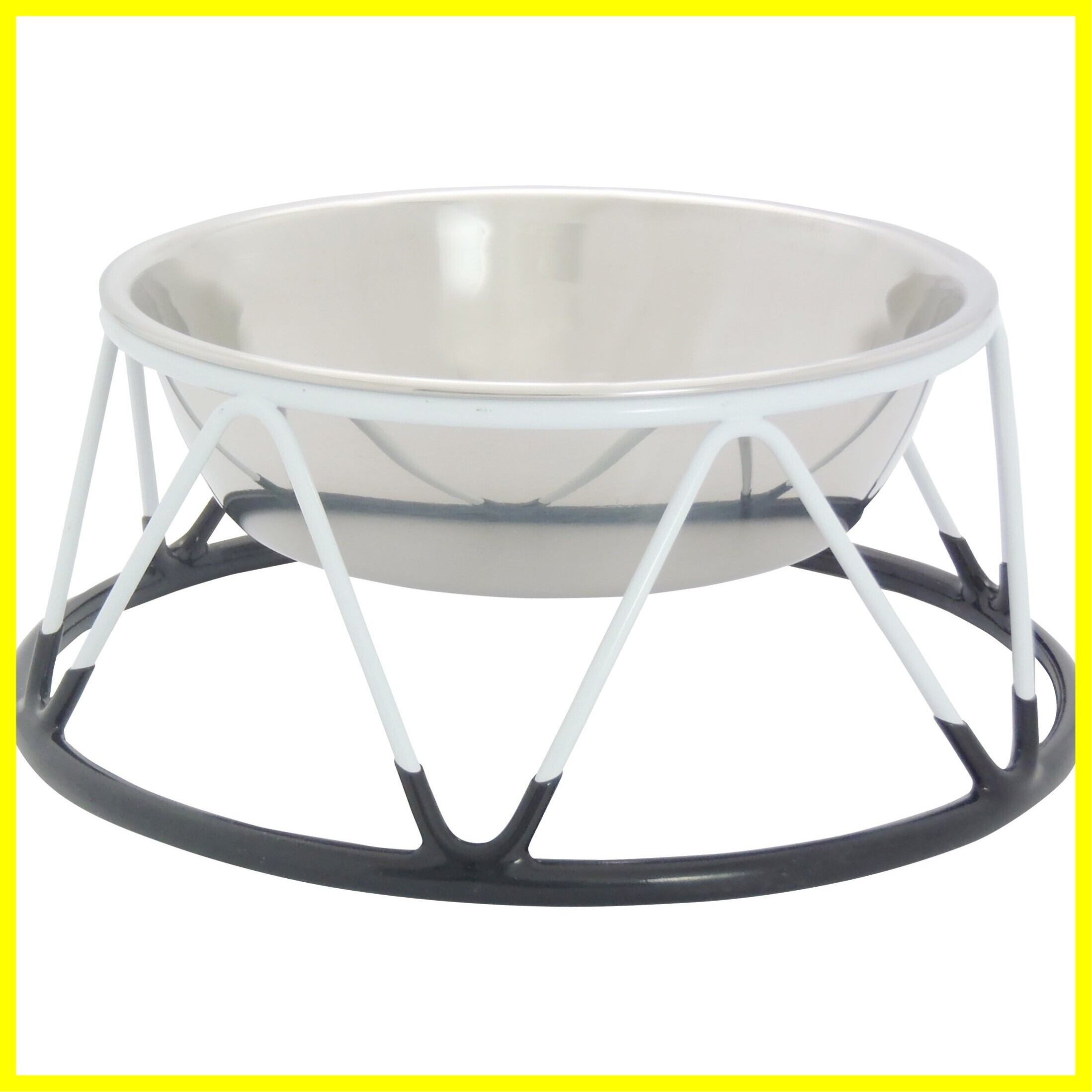 シンプルなスタンド付きステンレスボウル。食器のフチ裏とスタンドの下部のラバーコーティングが食事中のカタカタ音を防ぎます。