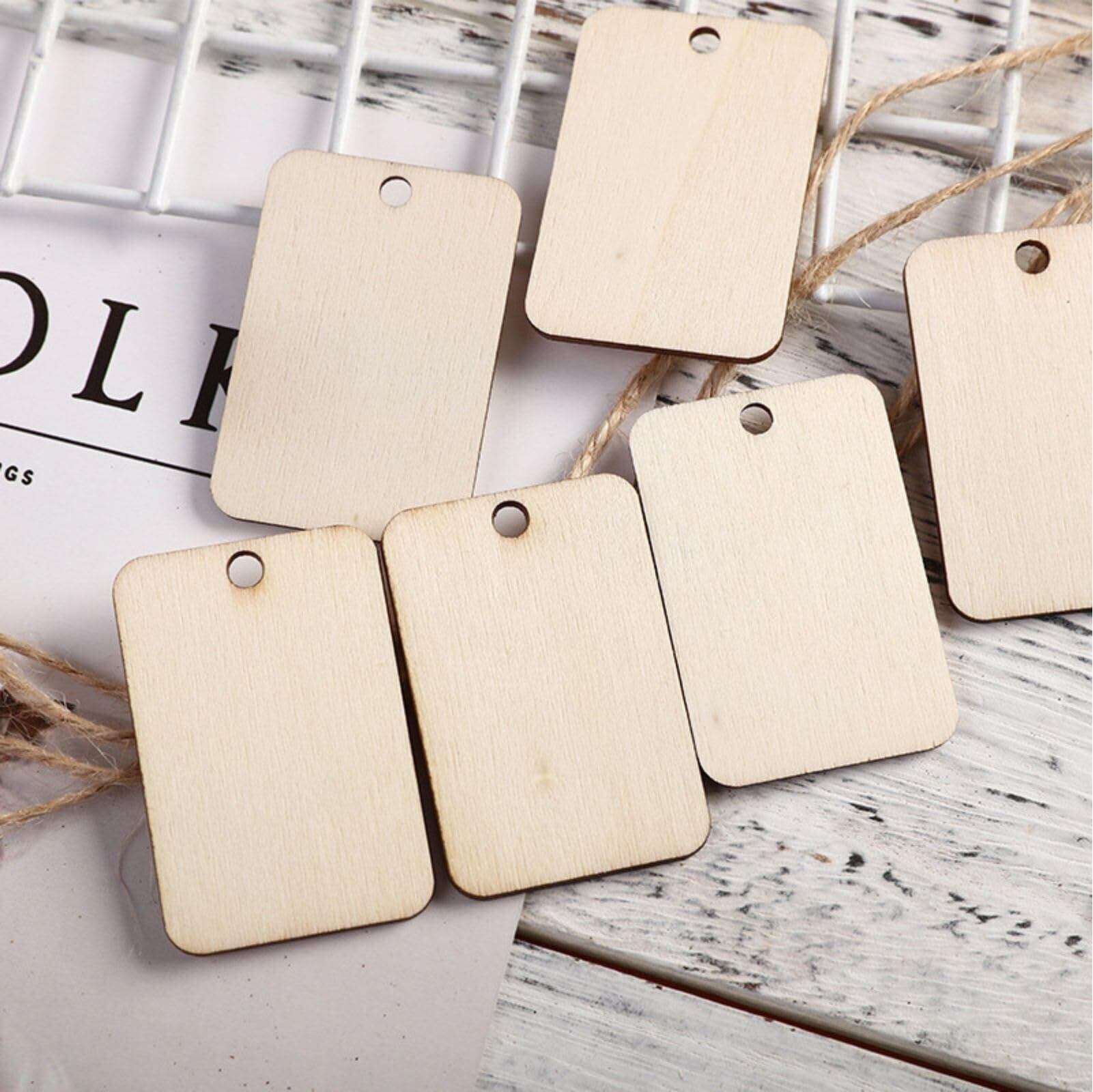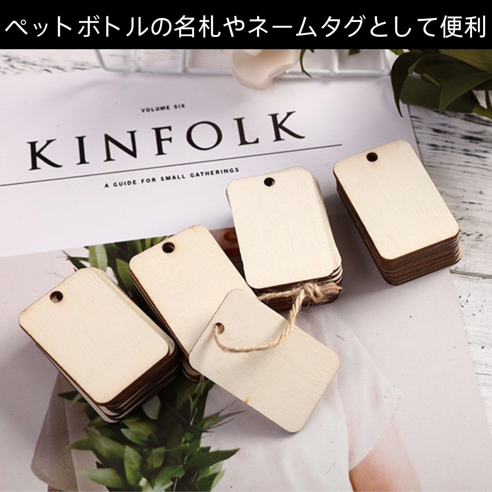 HOTQ ボトルネームプレート ボトルキープ 木材 タグ ボトル 木片 長方形 チップ 木材タグ 長方形板 ひも付き 50個入