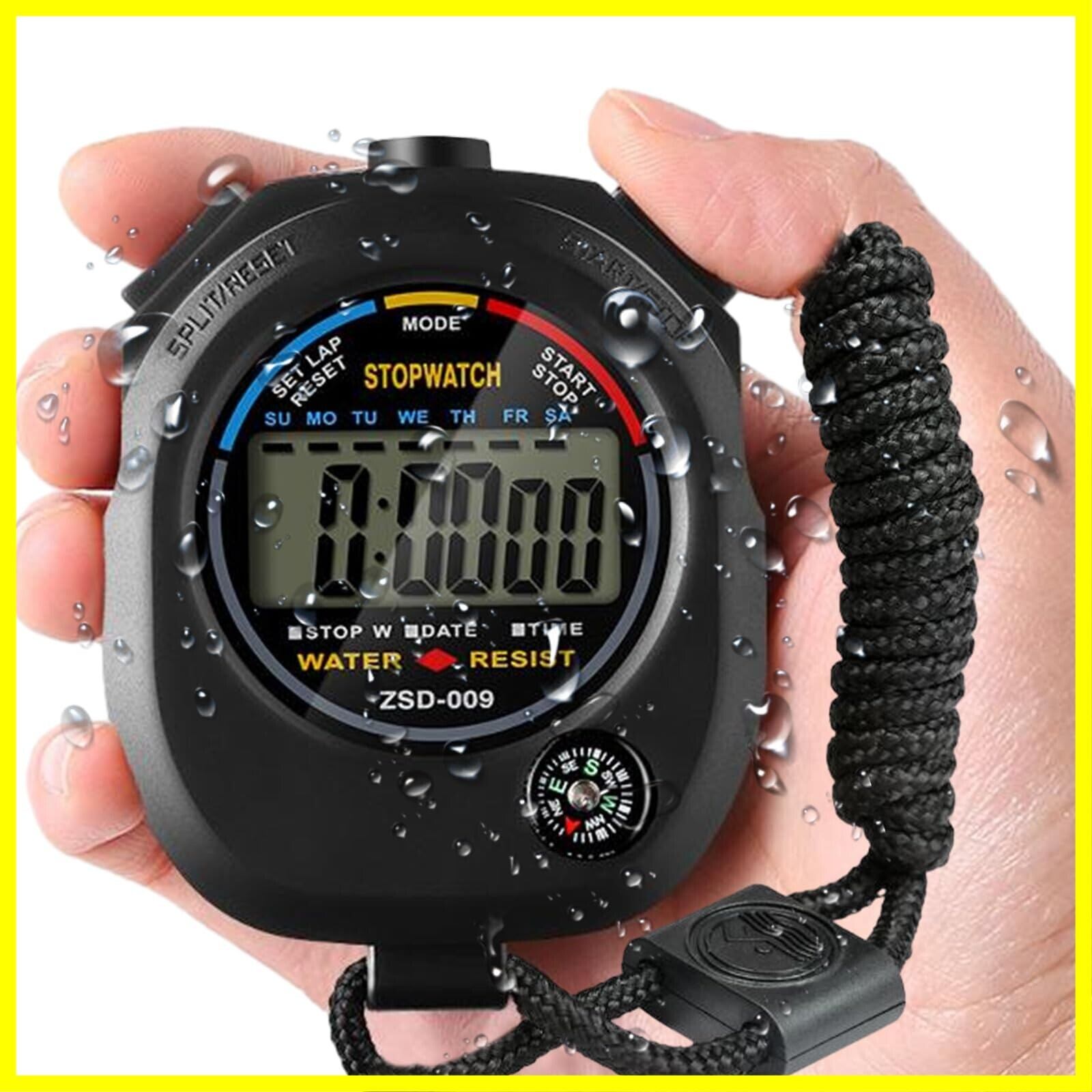 aninako ストップウォッチ スポーツ デジタル 時計 タイマー 防水 高精度 ストップ ウォッチ 審判とトレーニング コーチのため 2つの日付表示機能 ストラップとバッテリー付き (1)