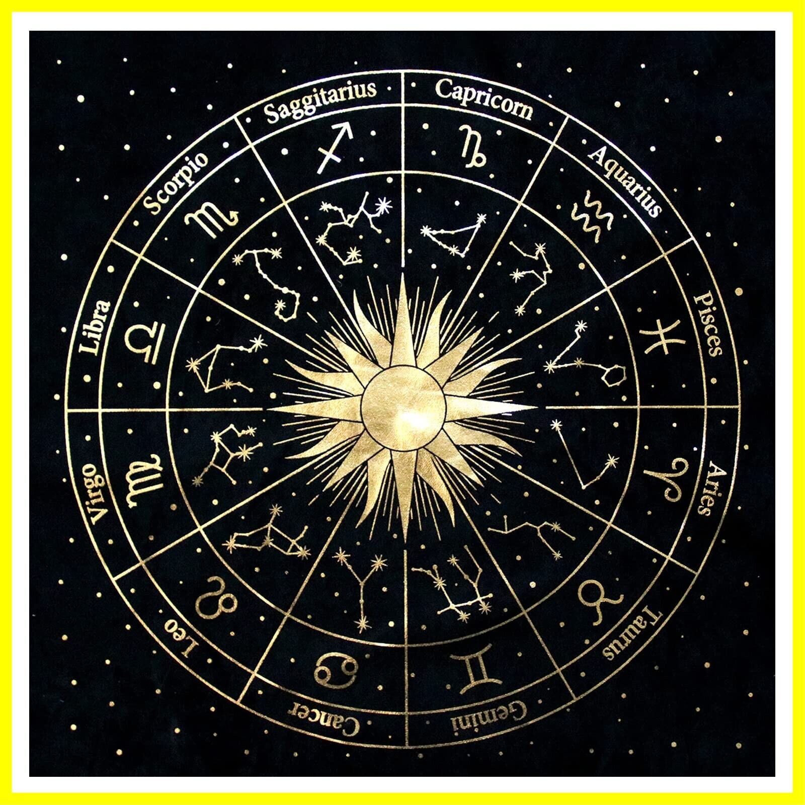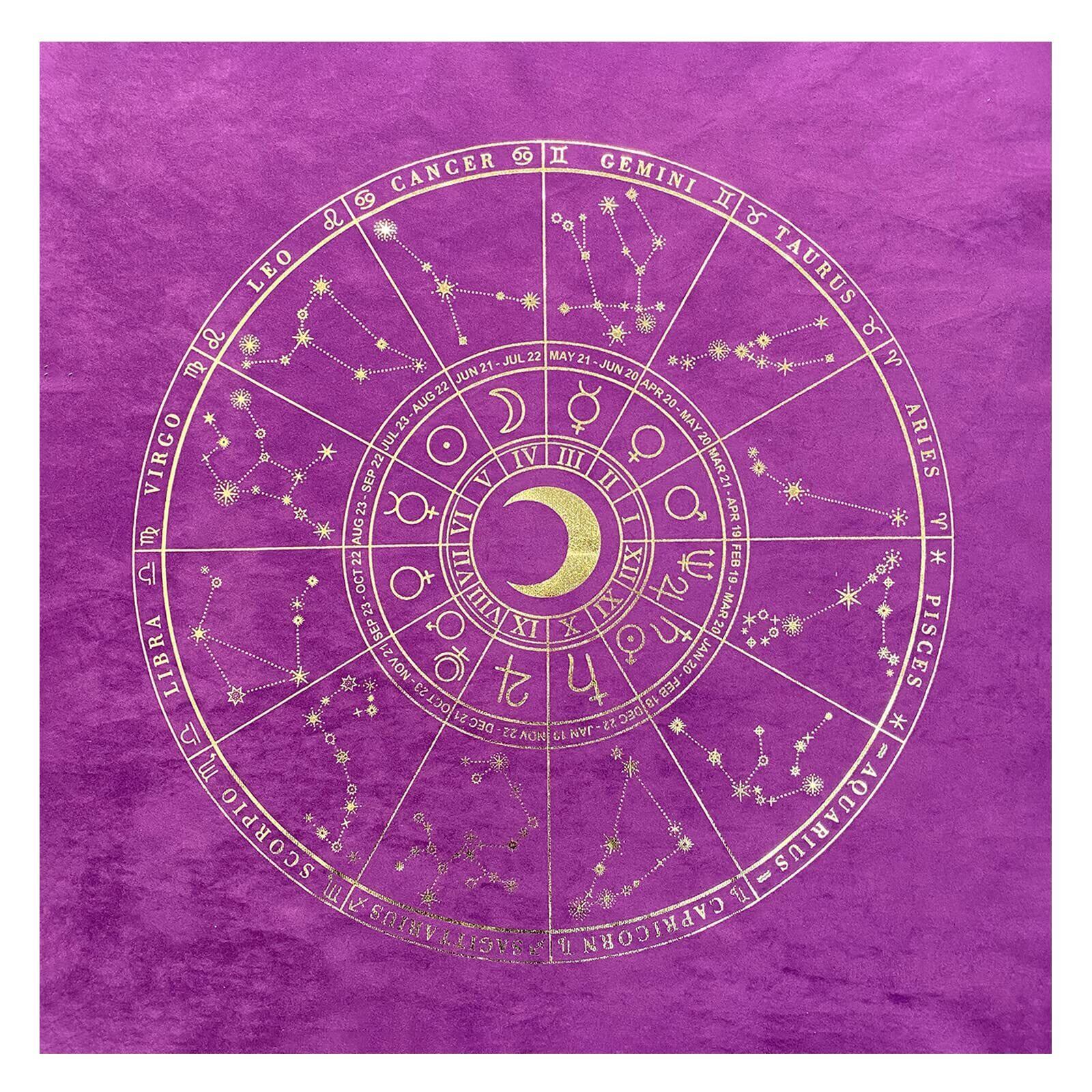 タロットクロス 大判 高級 マット ベルベット 49*49Cm 滑り止め付き 星座風 五芒星 バラ新月 カードゲーム用 占い用 クロス 星座-日-黒