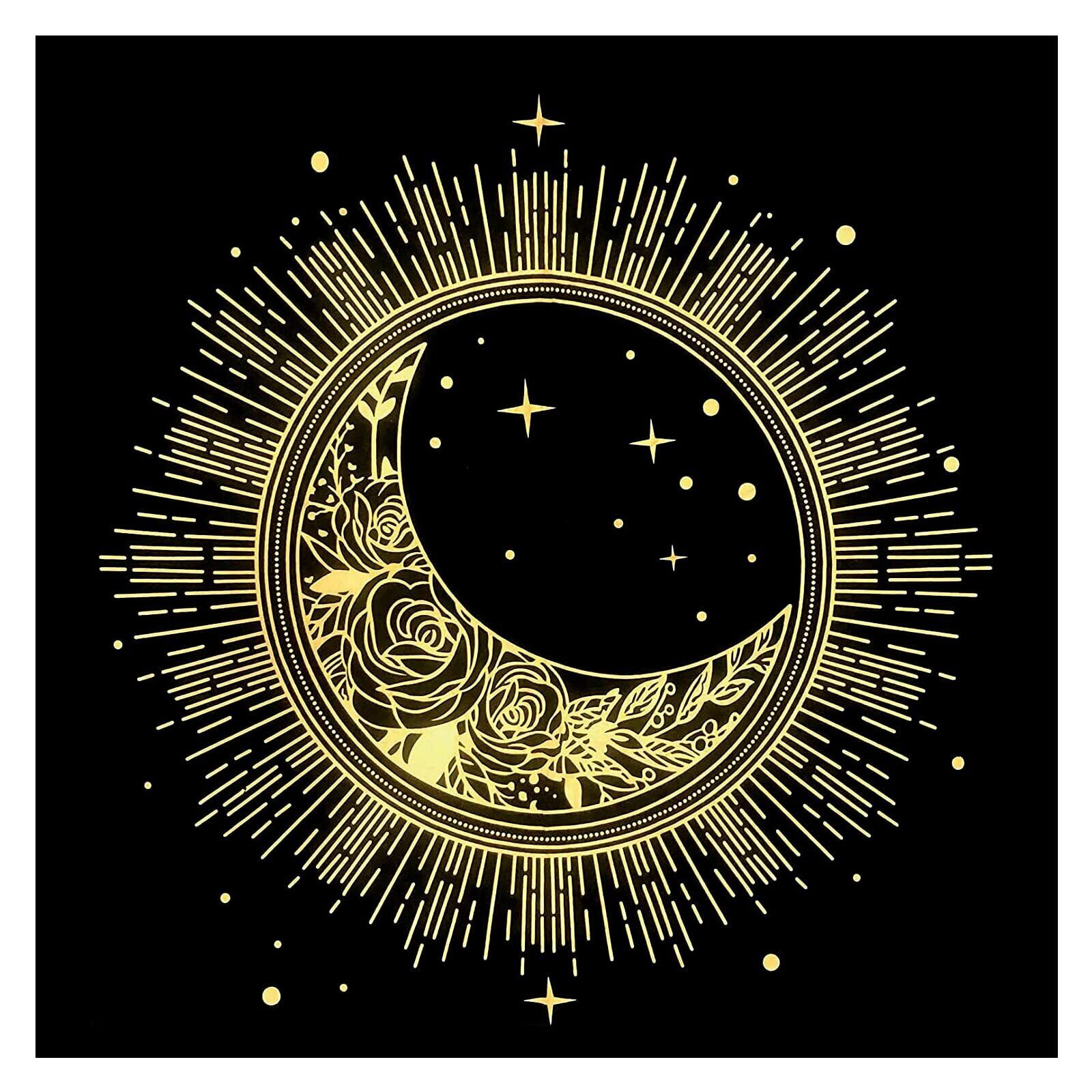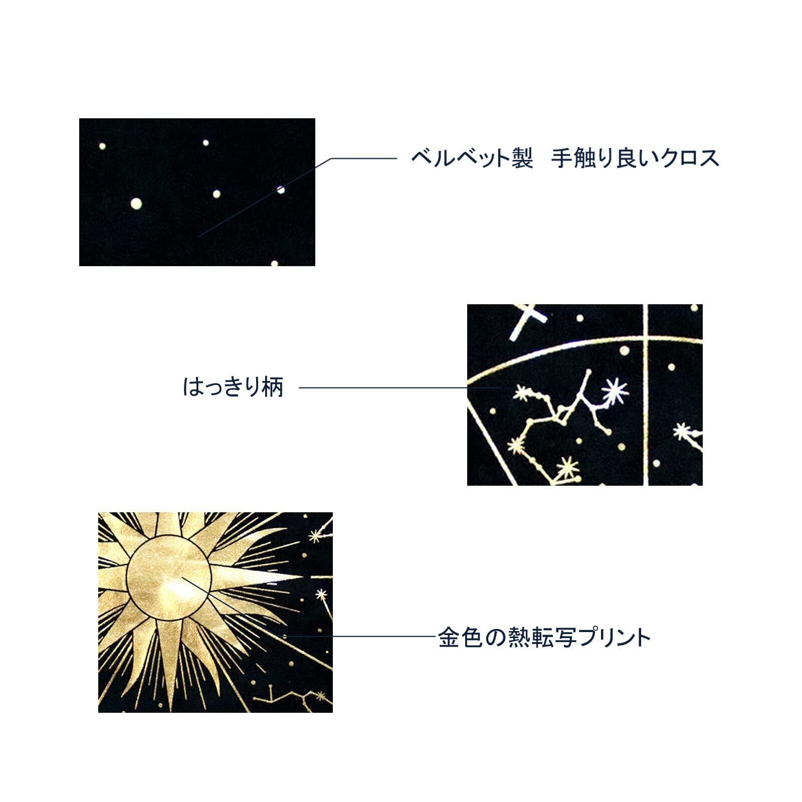 【デザイン】星座、月相、太陽を組み合わせたクラシックなタロットカードデザイン! 絶妙なプリントでデザインされた、パターンはとても美しいです。 金色の熱転写プリント 加工生地 、 占いの神秘的な雰囲気を作り、没入型の体験をもたらします。