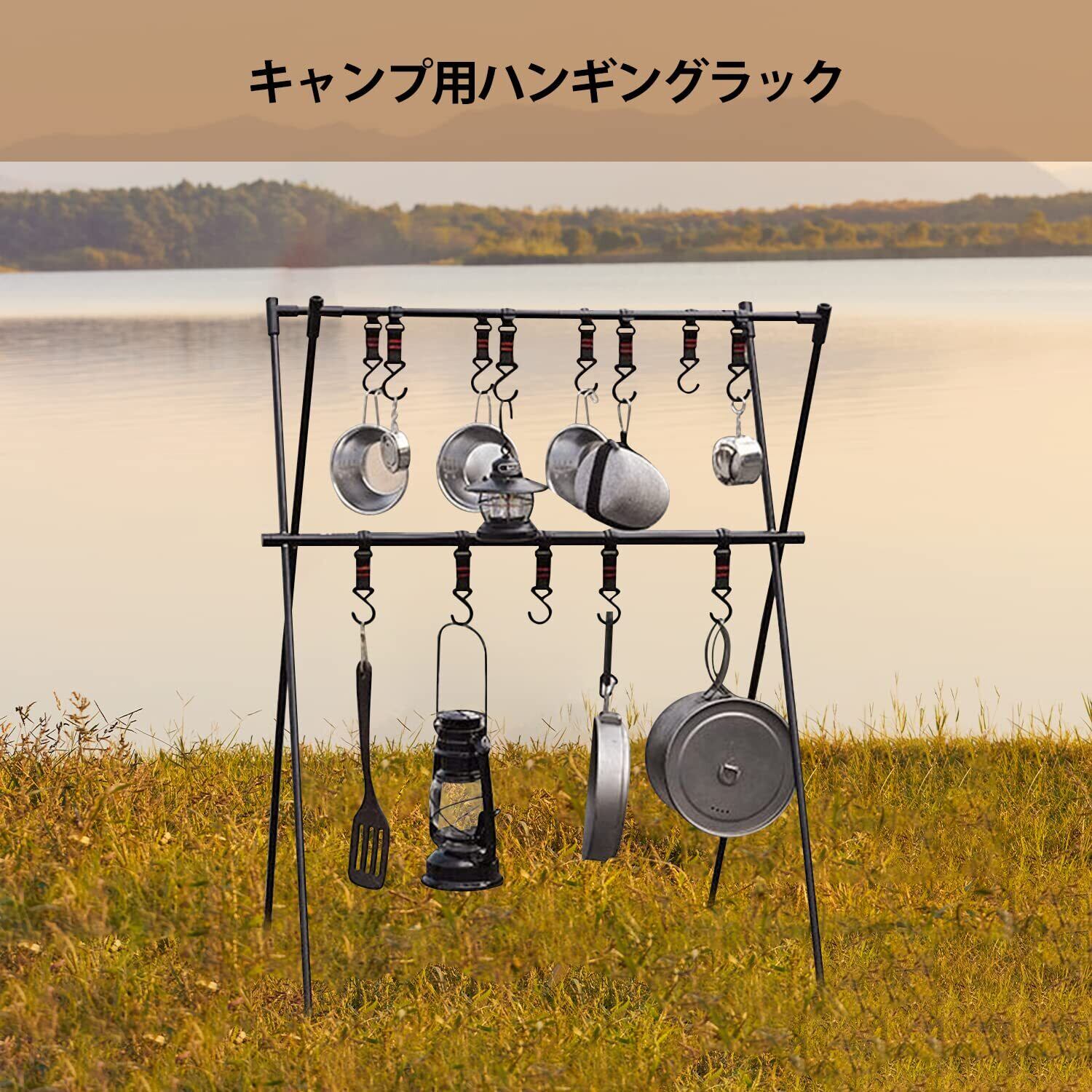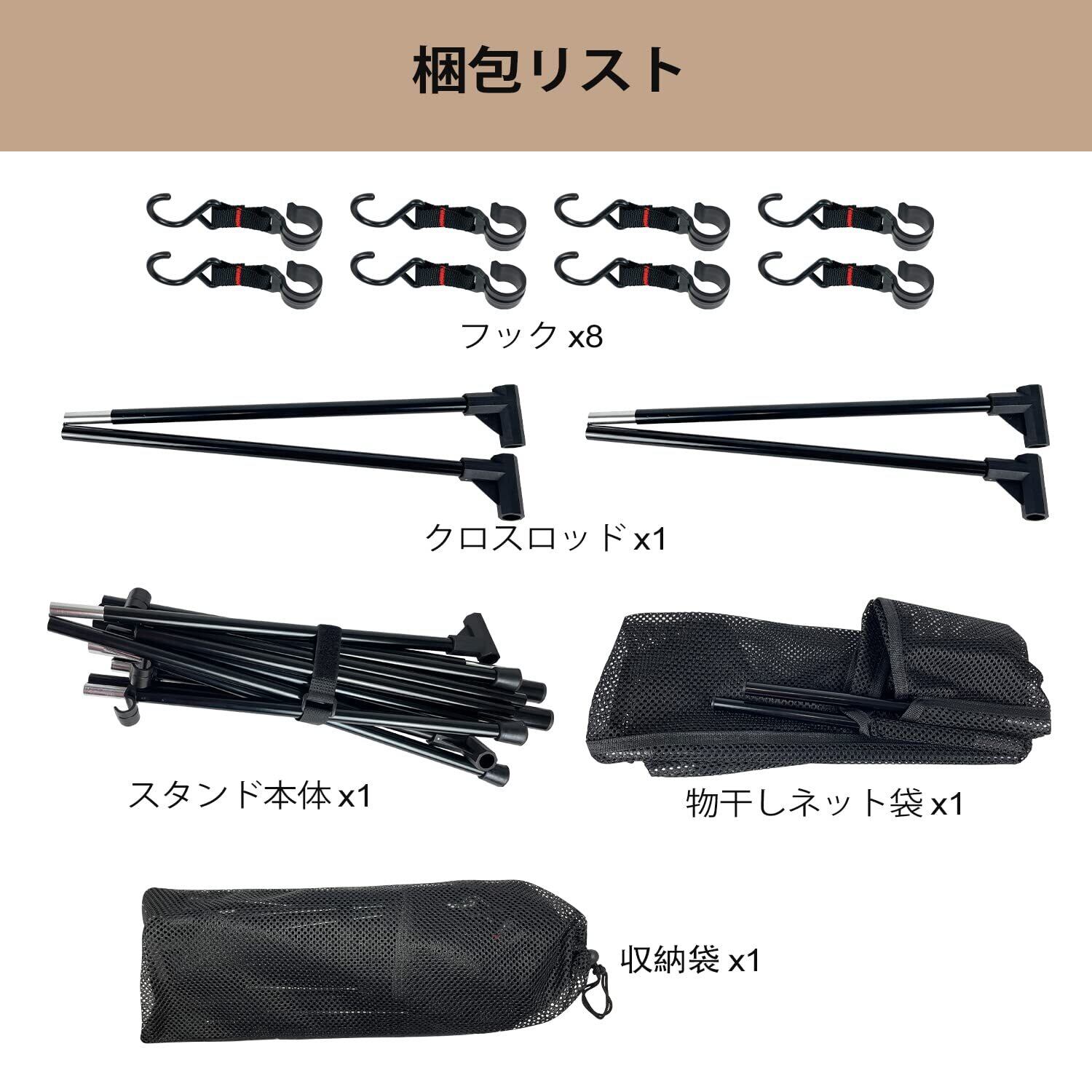 Sutekus キャンプラック ランタンスタンド ハンギング アウトドア ランタンハンガー 掛けフック8個 幅73センチ 高さ90センチ 収納用 ハンガー 物干し ネット 折り畳み 組み立て簡単 キッチン道具 整理 家庭用 登山 アウトドア キャンプ テント泊 アルミ合金 収納袋付き