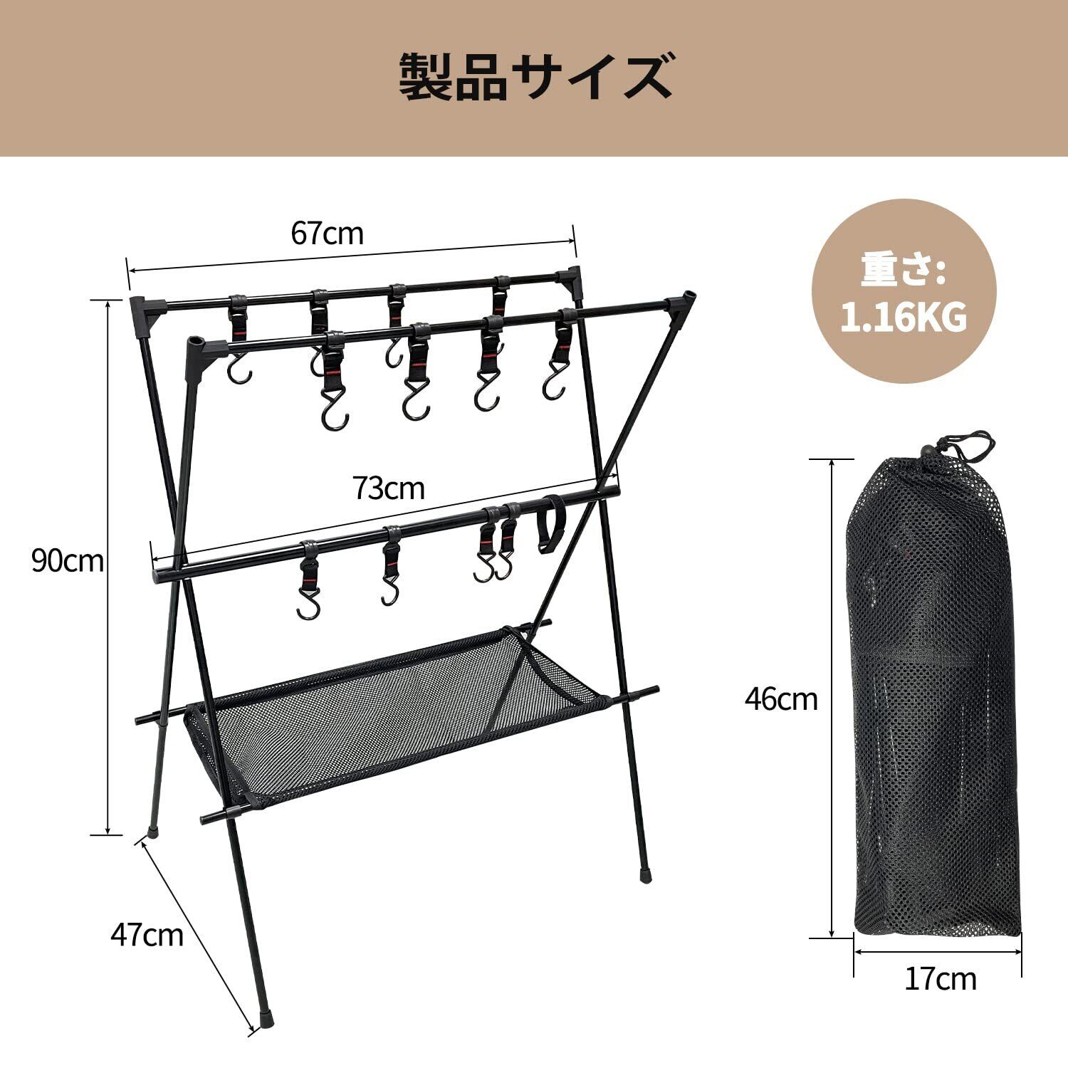 【折り畳み式】設置時の高さは90㎝に達し、テントの中の物掛けとして楽にお使いいただけます。アルミ合金製、軽量で折りたたみ可能。誰でも簡単に設置できます。専用収納袋付き、コンパクトで持ち運びも便利です。