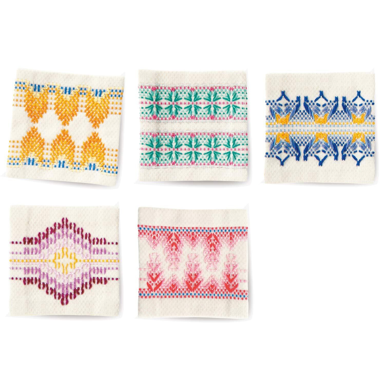 スウェーデン刺繍は、布の折り目を針ですくっていくだけで、美しい模様ができ、裏側には糸が出ないのが特徴の、色鮮やかで伝統的な刺繍です。