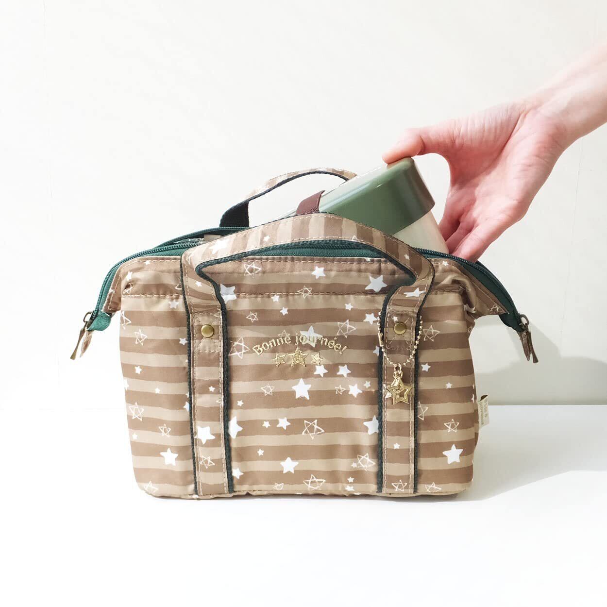 【ダブルファスナー仕様】便利なダブルファスナー仕様。端までしっかりと開閉しやすい作りです。お弁当とお箸がぴったり入るコンパクトサイズ。サブバッグとしてはもちろん、バッグインでもお使いいただけます。