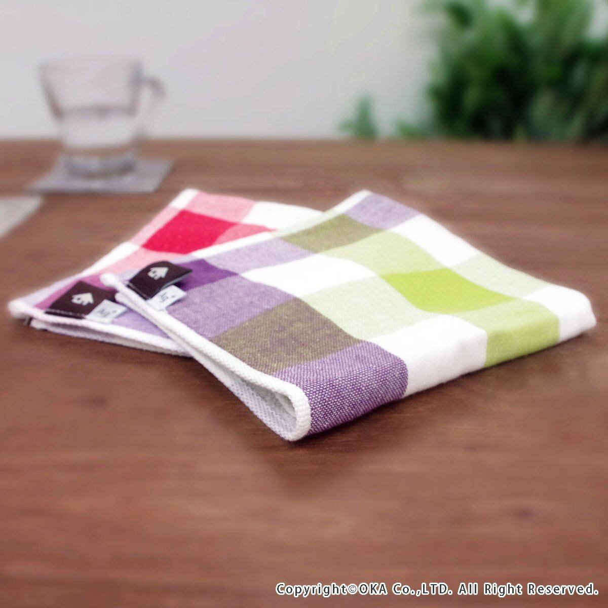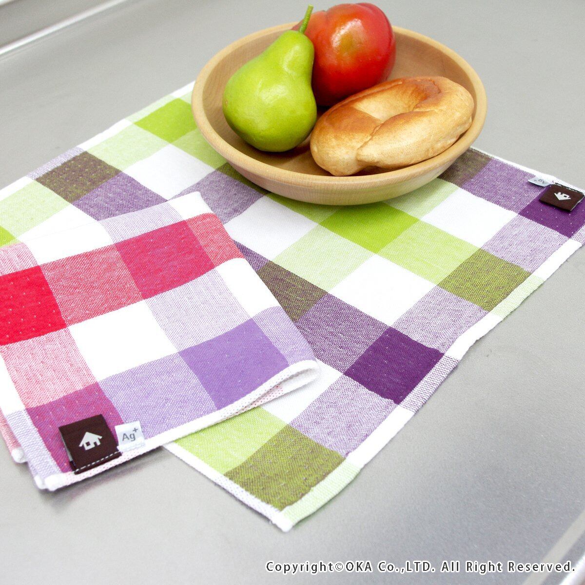 オカ(OKA) Ag+ イヤなにおいのしない 表ガーゼ&裏パイル ふきん レッド チェック