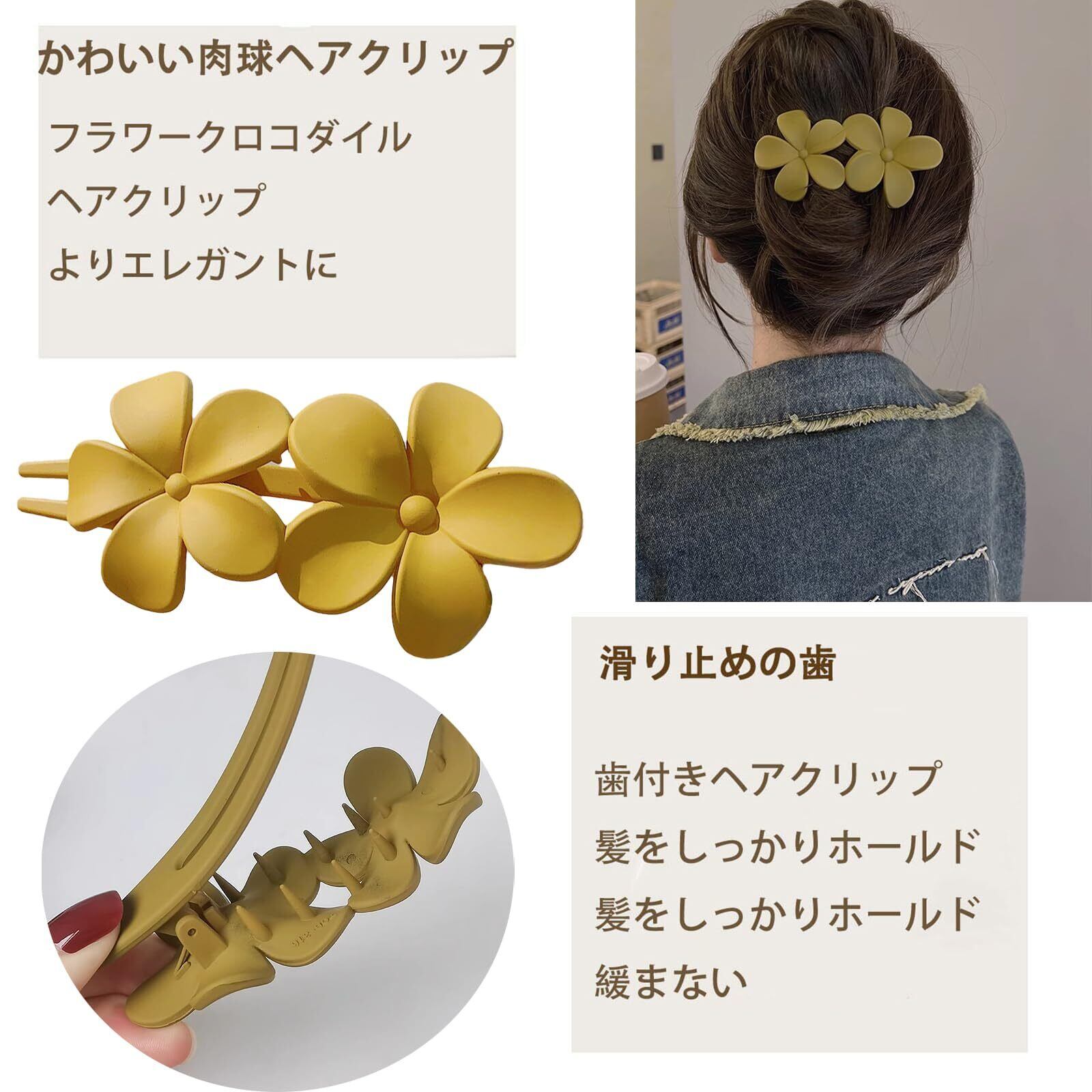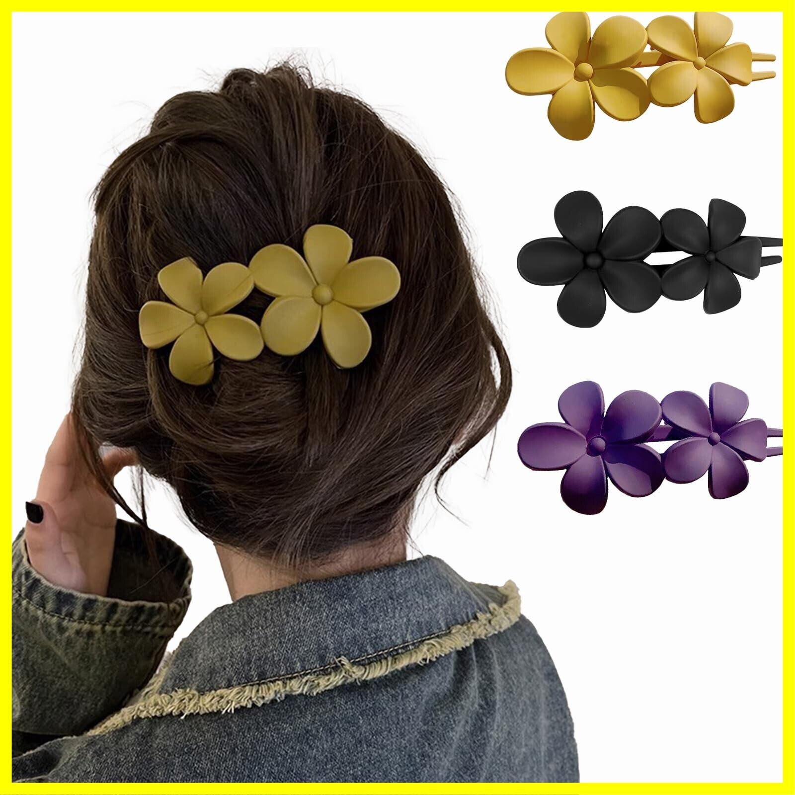 AUTAKI ヘアクリップ 3個セット 花形髪留め マット 花モチーフ しっかりとまる 大きめ レディース ヘアアクセサリー シンプル おしゃれ 韓国風 可愛い エレガント 普段使い 職場 仕事 通勤 女性用 (ブラック+イエロー+パープル)