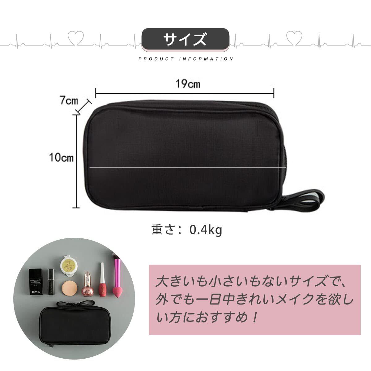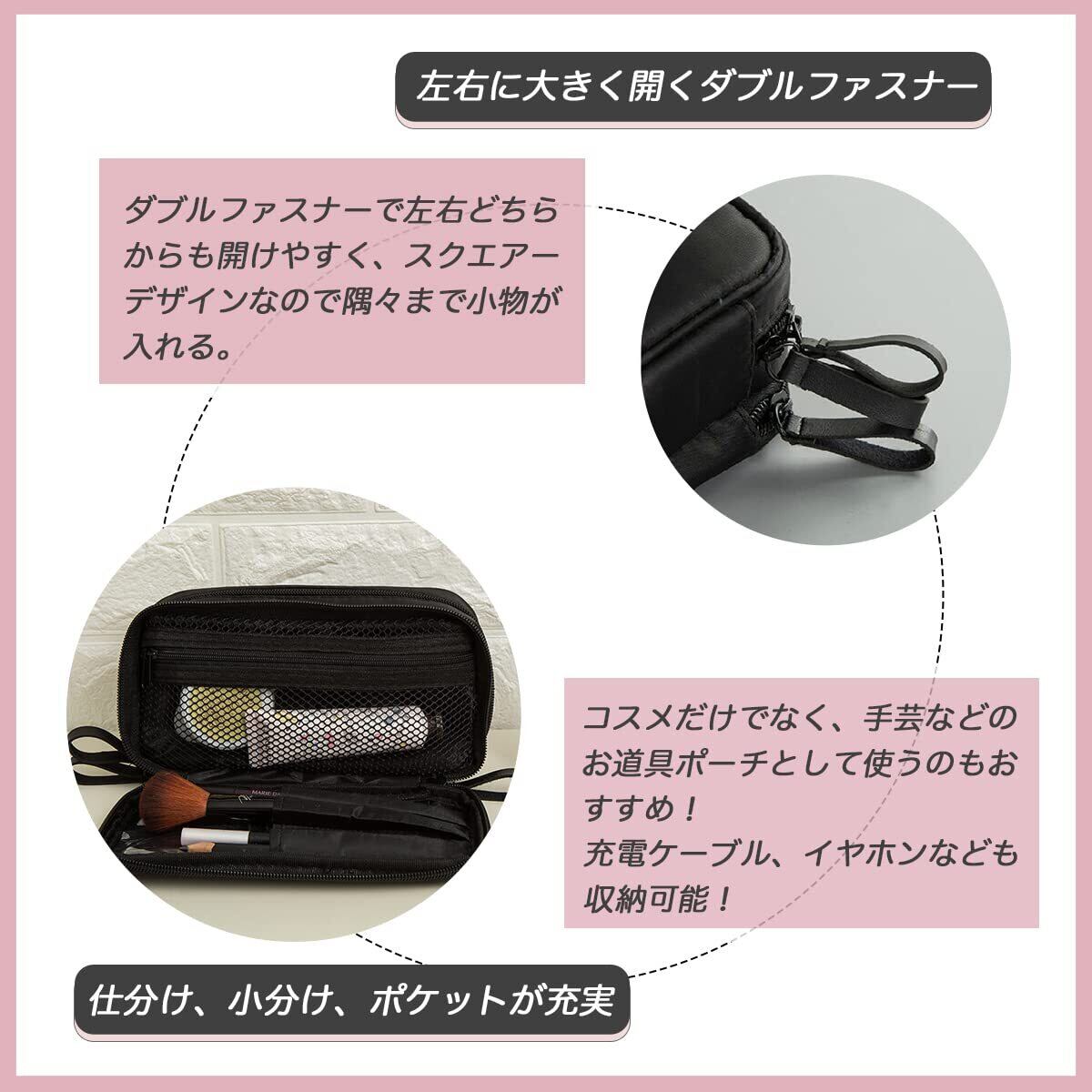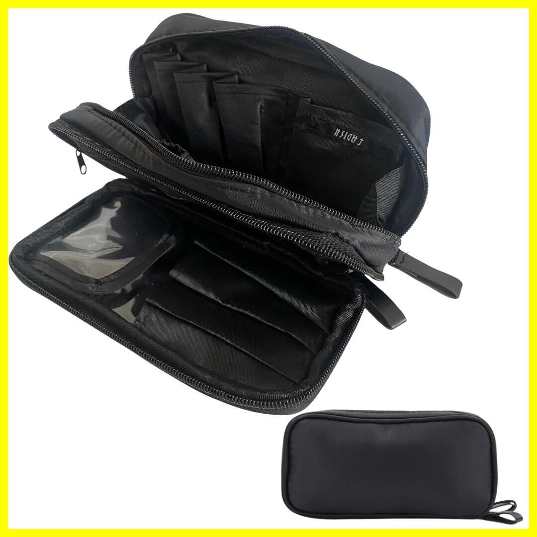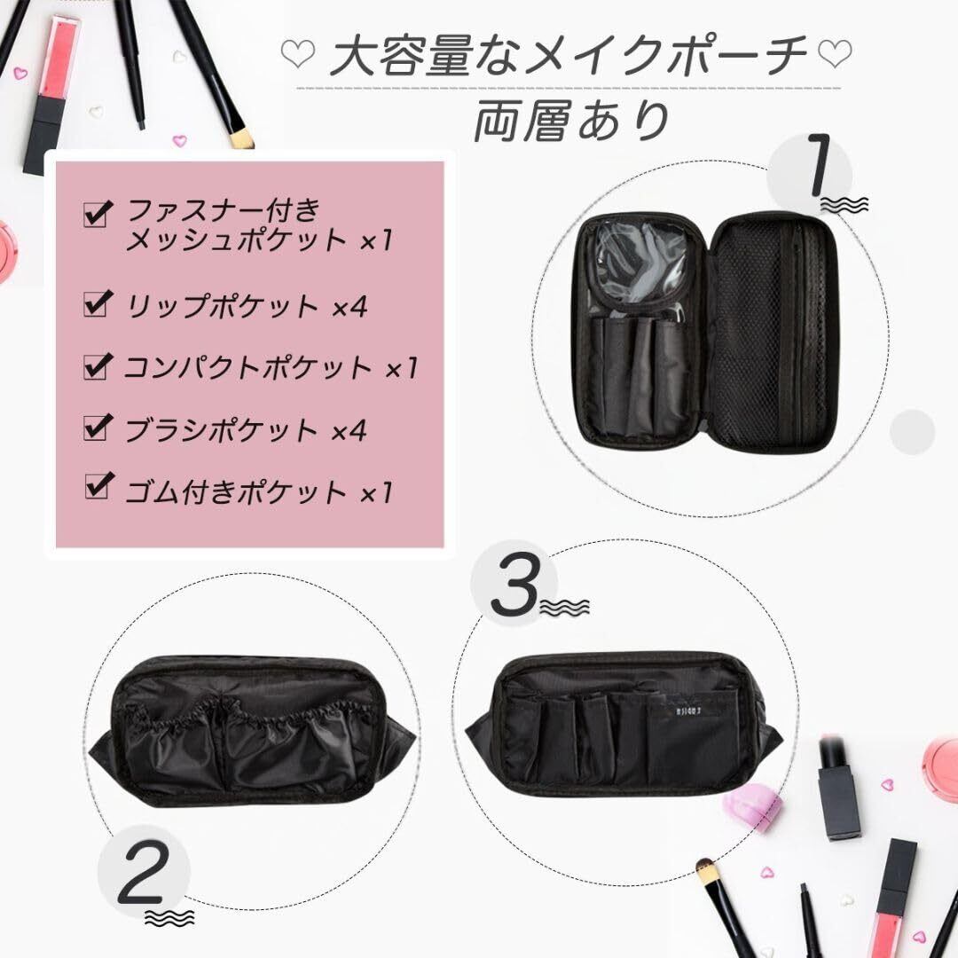 Rajjo 化粧ポーチ 二層 ポケット 機能的 ダブル ファスナー メイク ポーチ コスメ 収納 小物入れ (ブラック/ブラック)