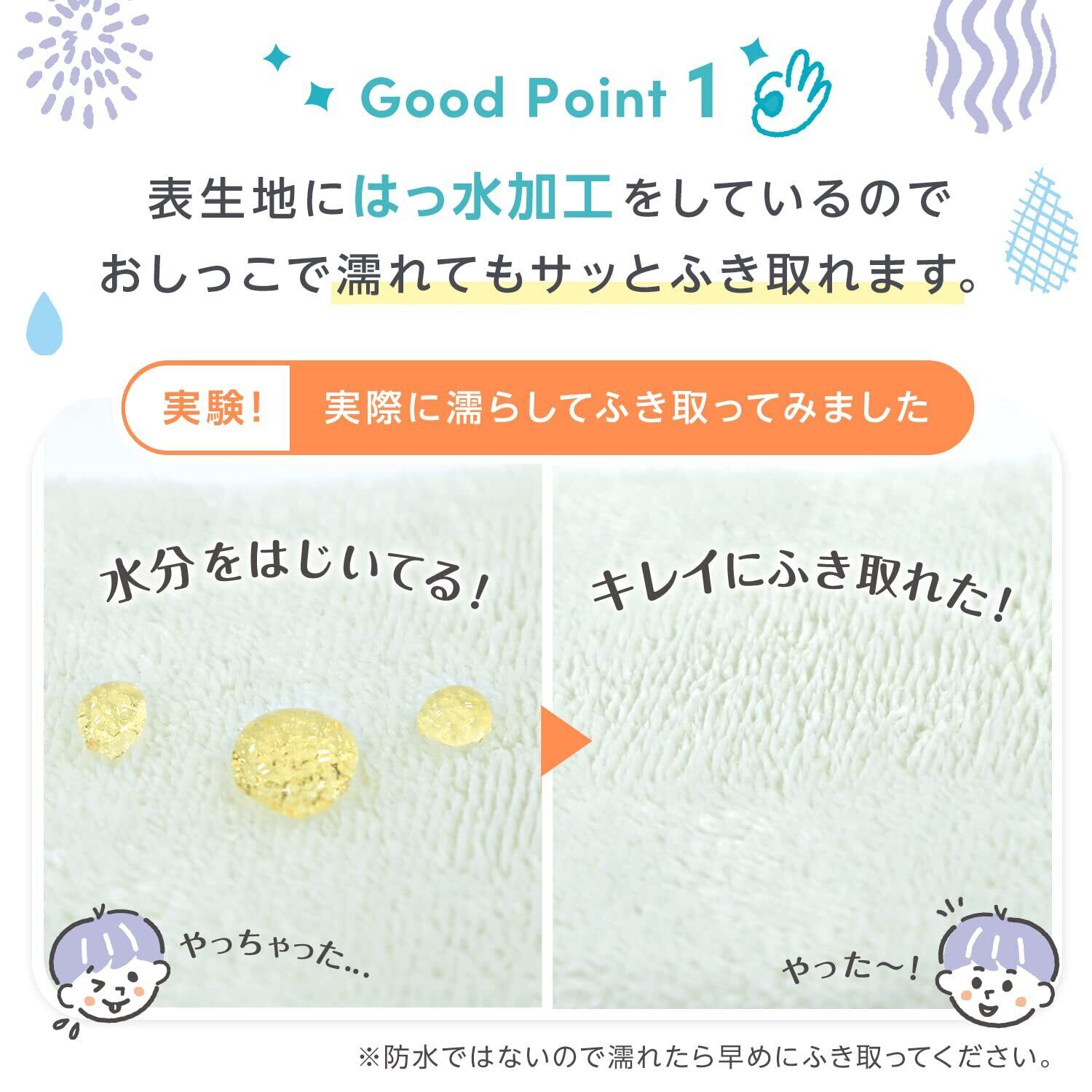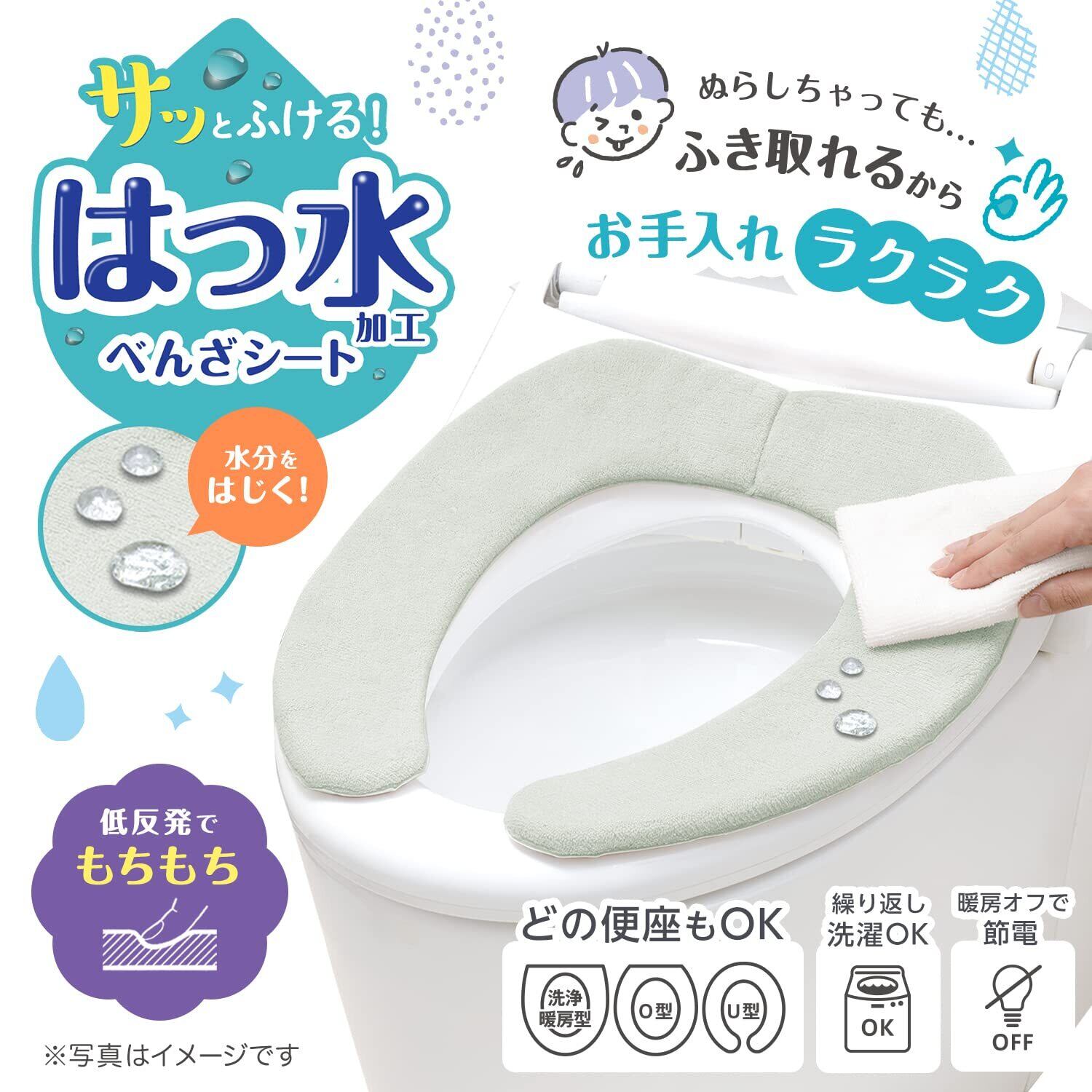 ●はっ水加工がされており、便座シートが濡れてしまっても、サッと拭くだけでお手入れができます。