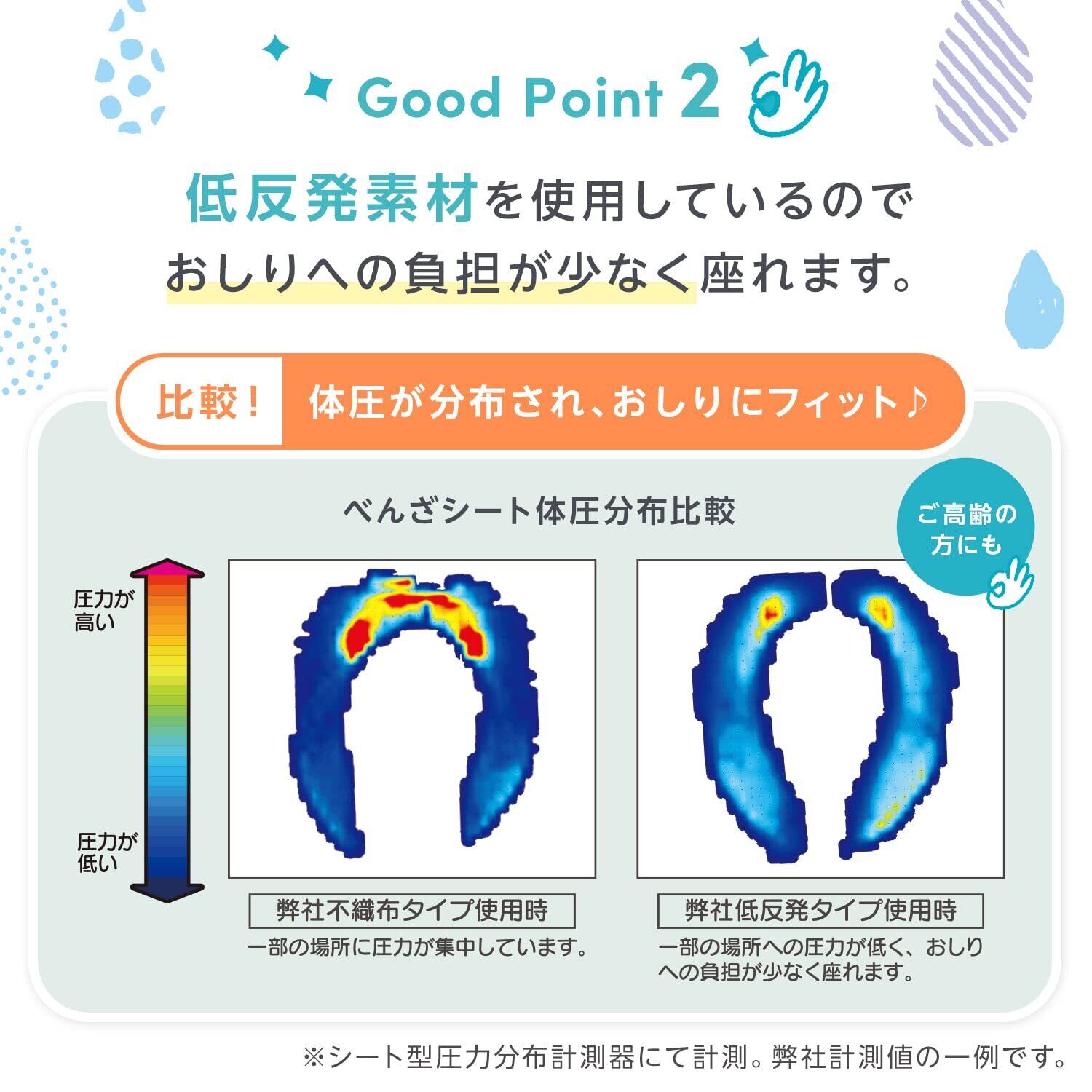 ●低反発素材を使用しているので、おしりにやさしくフィットします。