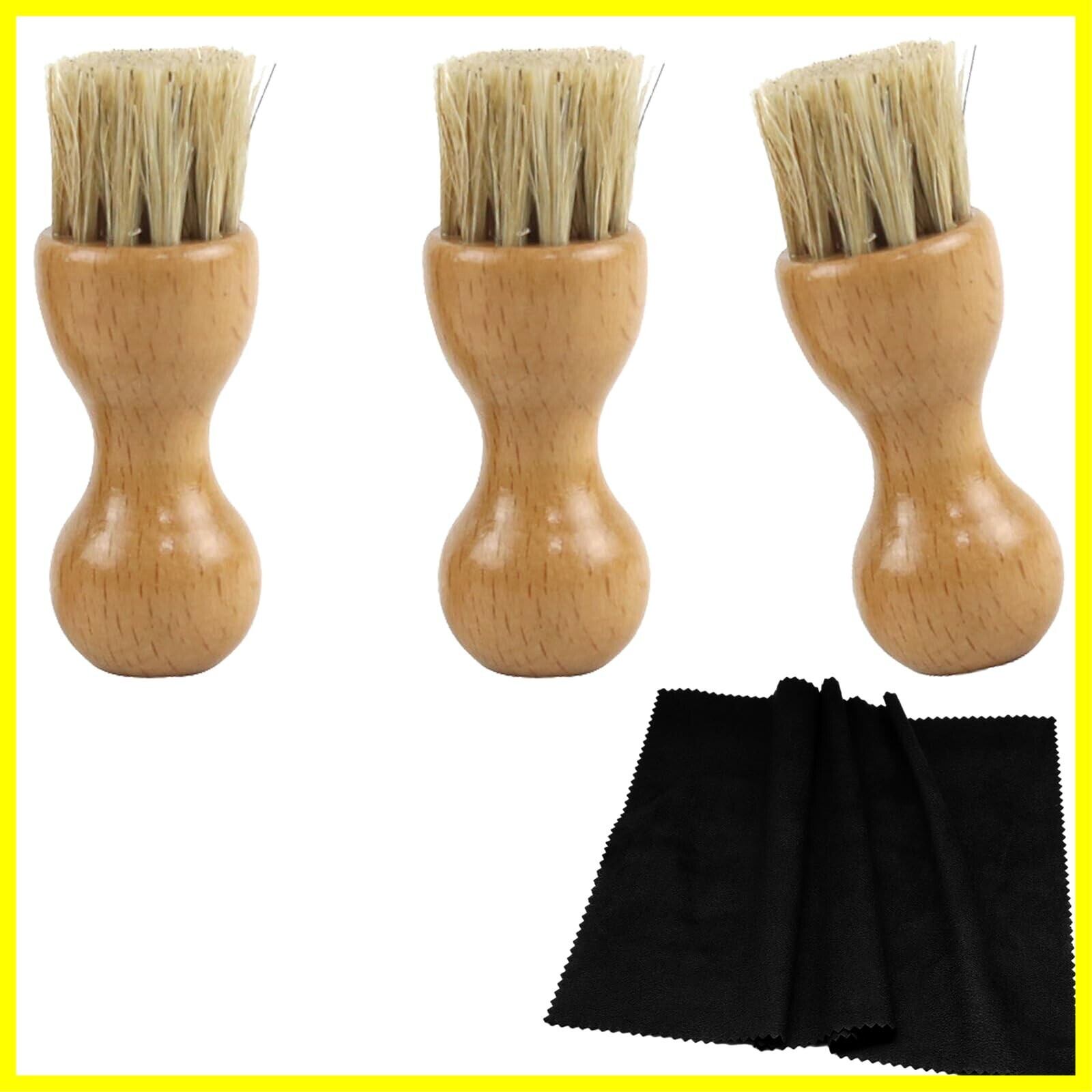 靴磨き ブラシ 良質毛ブラシ 靴クリーム塗布用 豚毛 革靴 手入れ セット クリーニングクロス付 (3個入り)