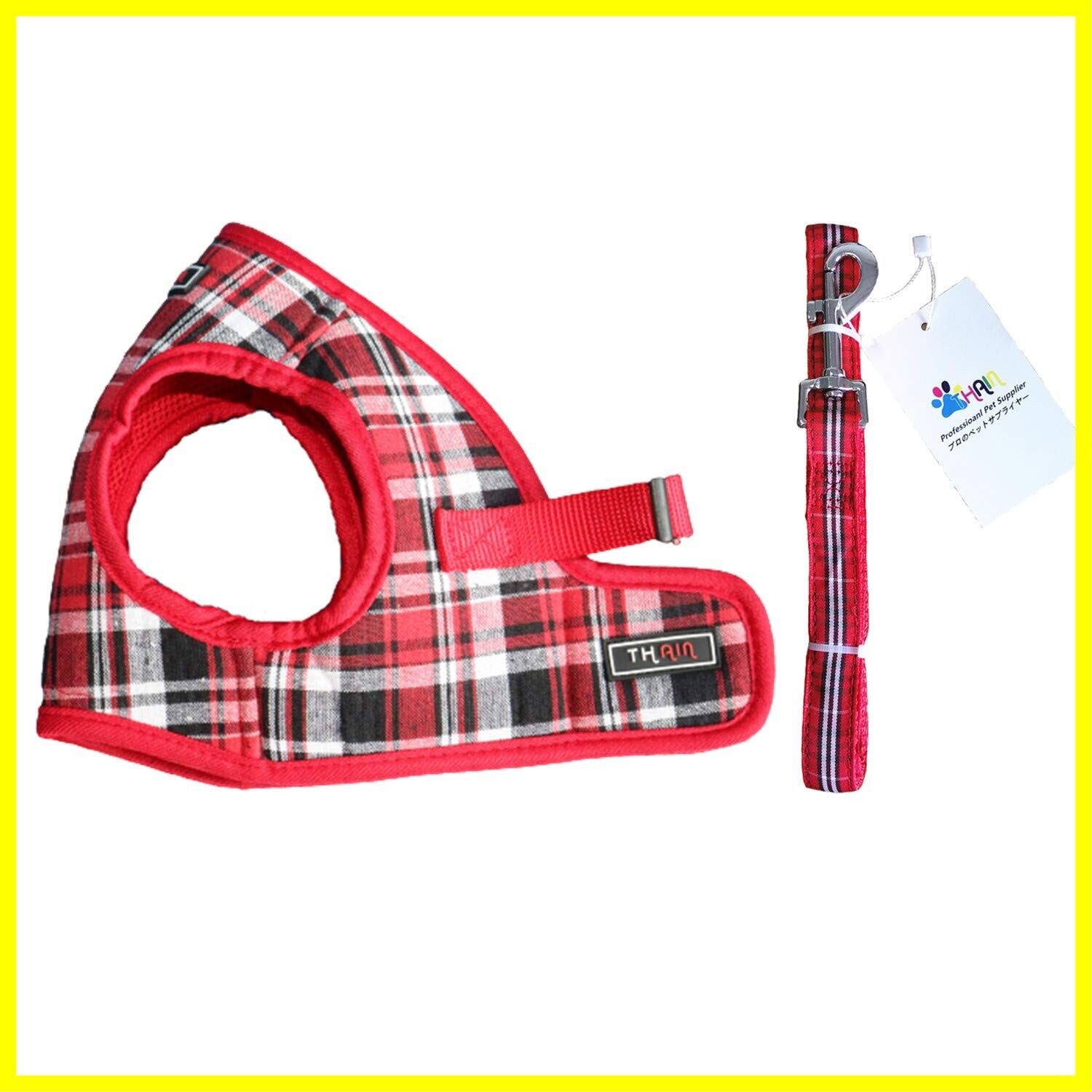 THAINハーネス・リード 3-5kgs 小型犬 ハーネス リードセット チェック 胴輪 メッシュ 犬 ハーネス 人気 格子縞 犬用ハーネス(M レッド)