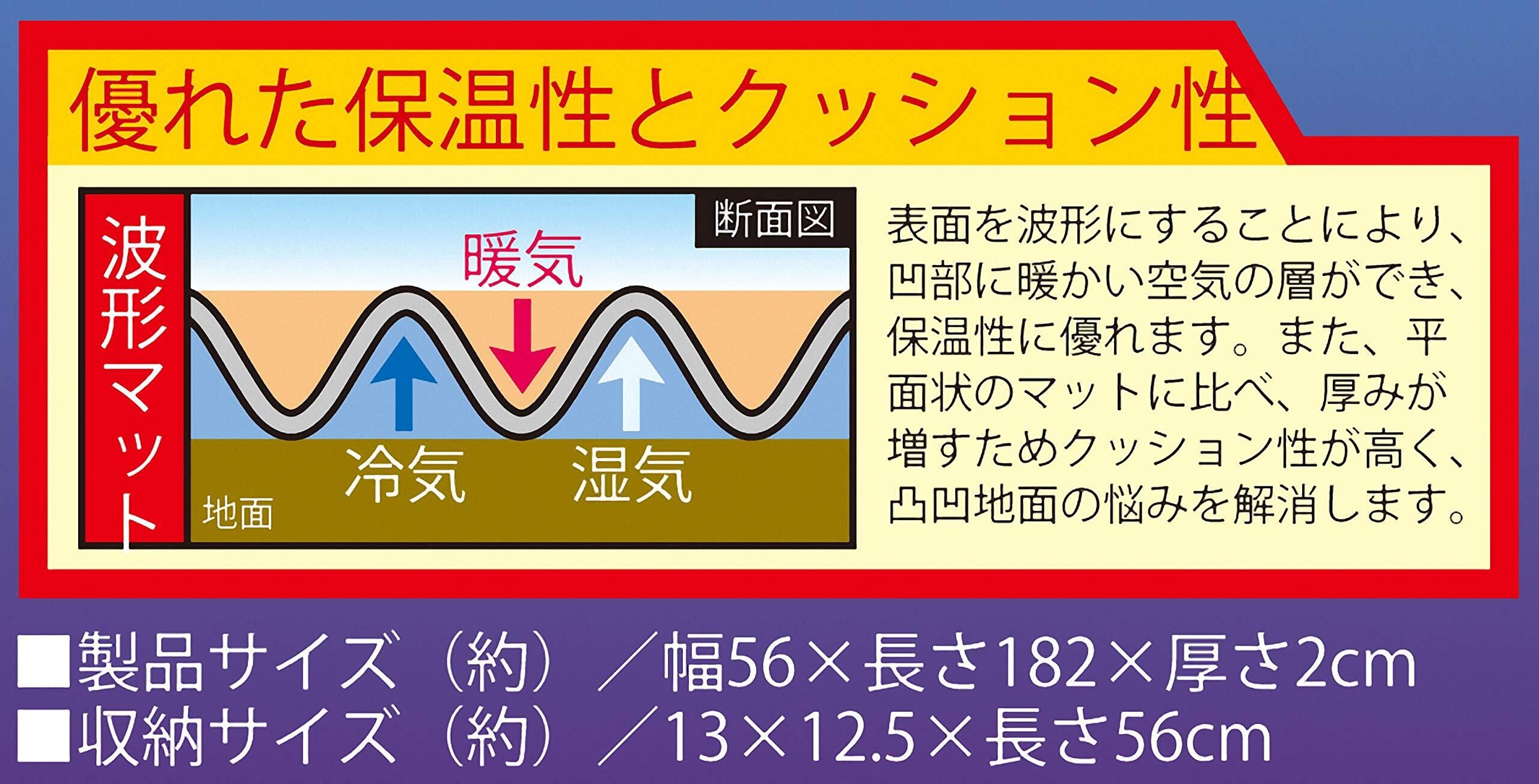 特徴1: 優れた保温性とクッション性で地面の凸凹や冷気をシャットアウト