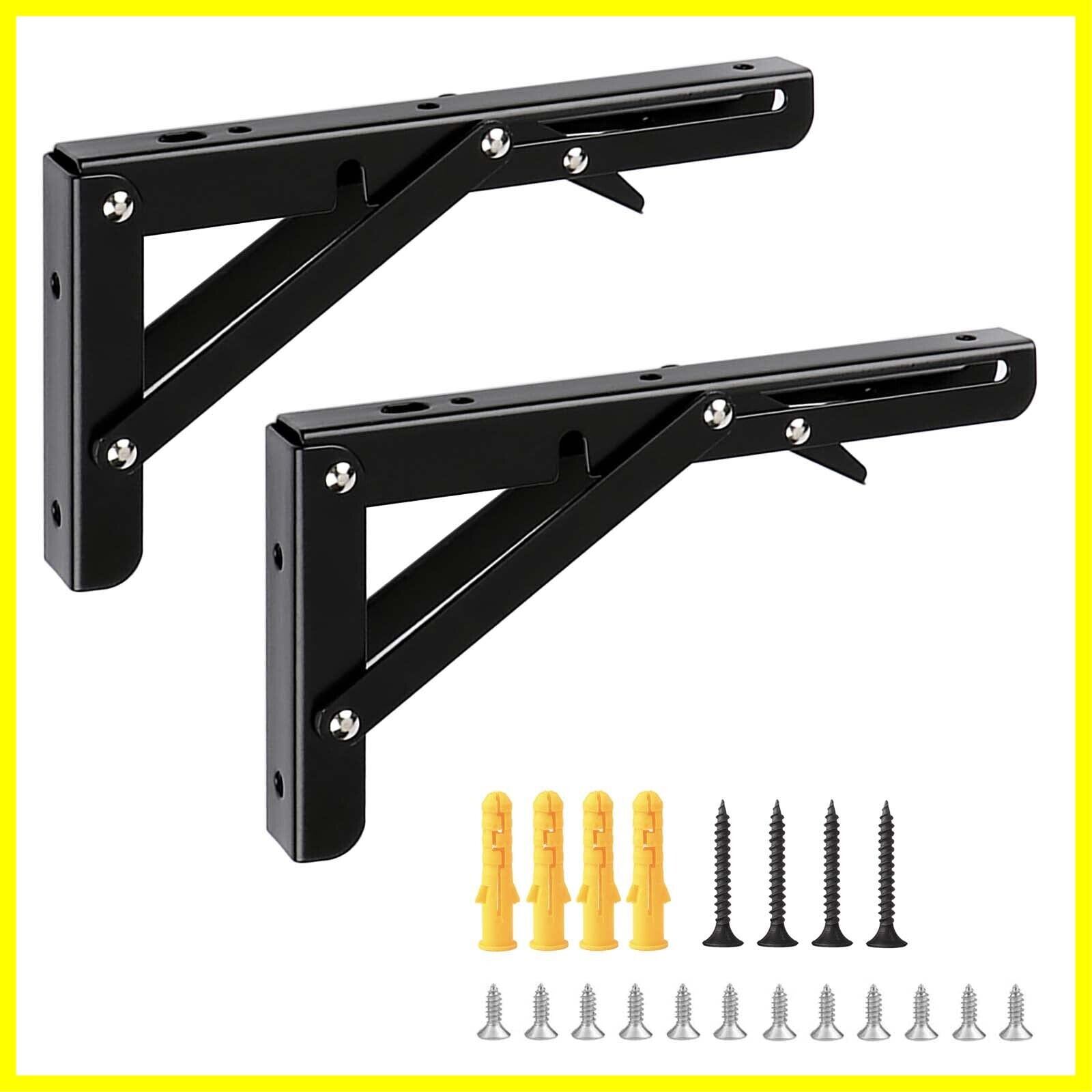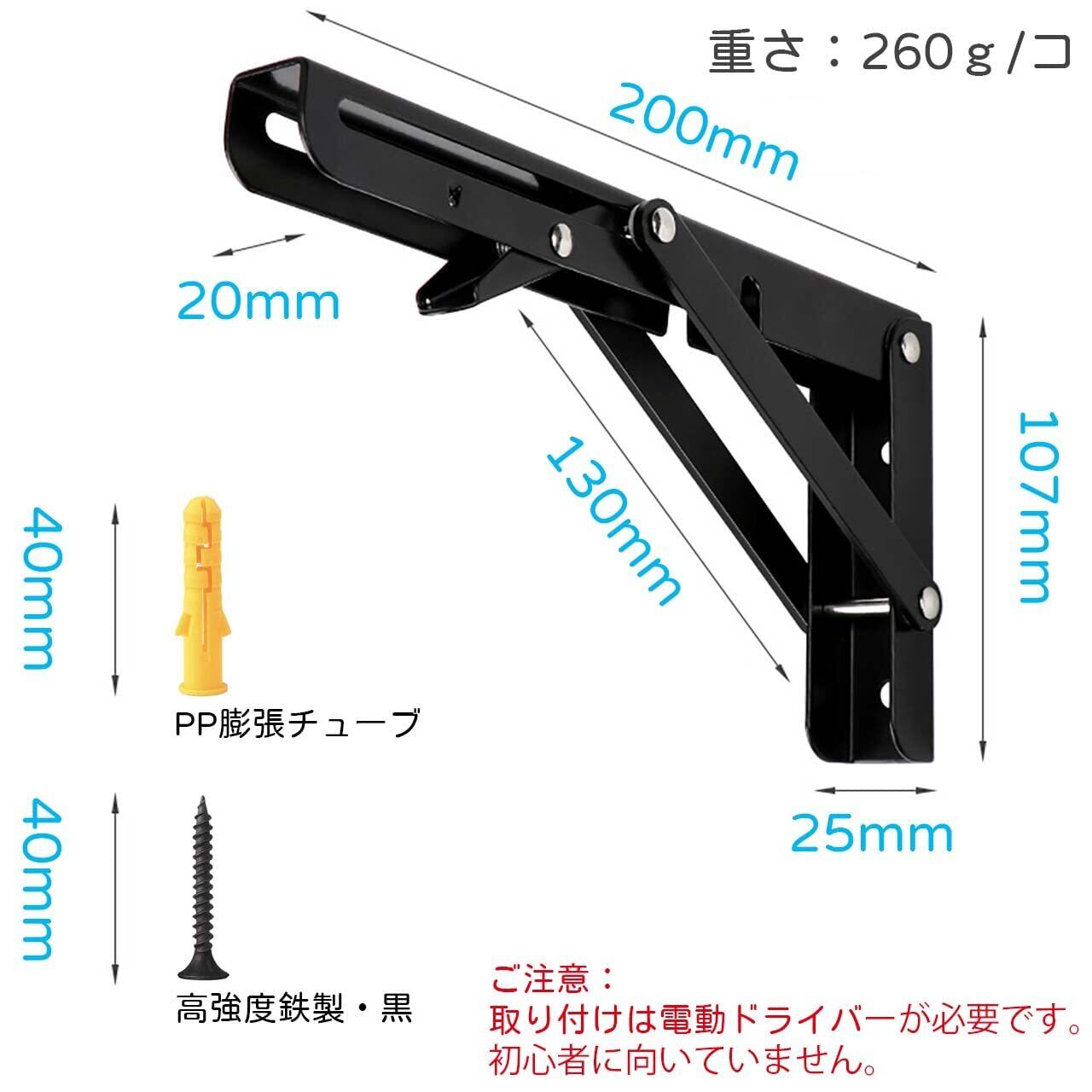 棚受け金具 折りたたみ L字型ブラケット棚支え 耐荷重50kg 2本セット 20cm (ブラック)