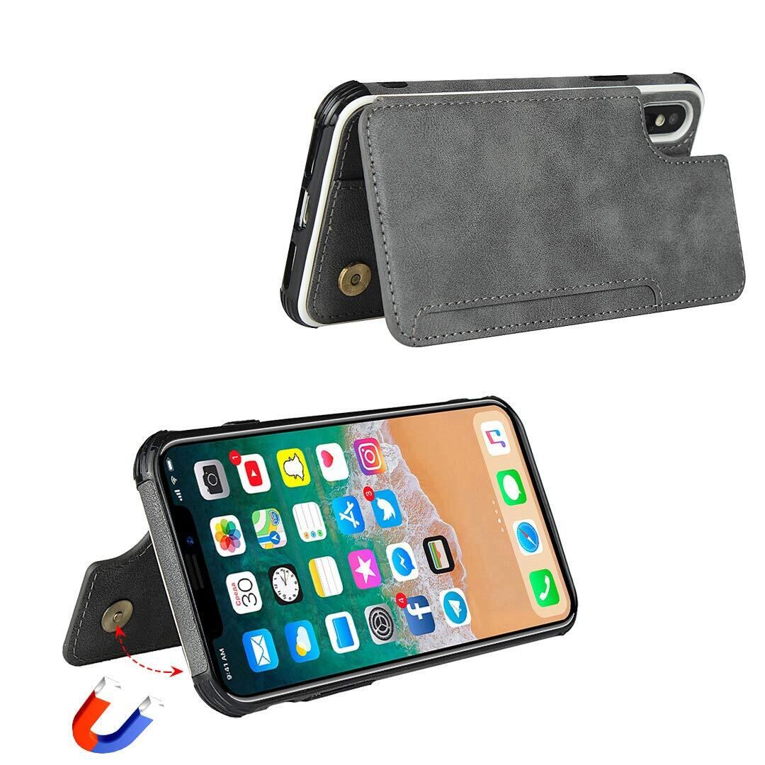 Pelanty for iPhone XS Max 手帳型ケース for iPhoneXS Max ケース縄掛け 背面カバー PUレザー IC カード収納 軽量 スタンド機能 ボタン磁気 多機能 アイフォンXS Max スマホケース 耐衝撃 滑り防止 全面保護 ストラップ 携帯カバー -グレー