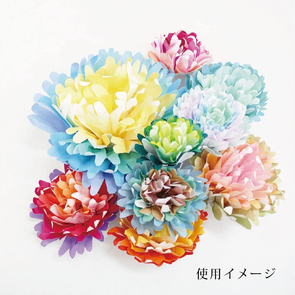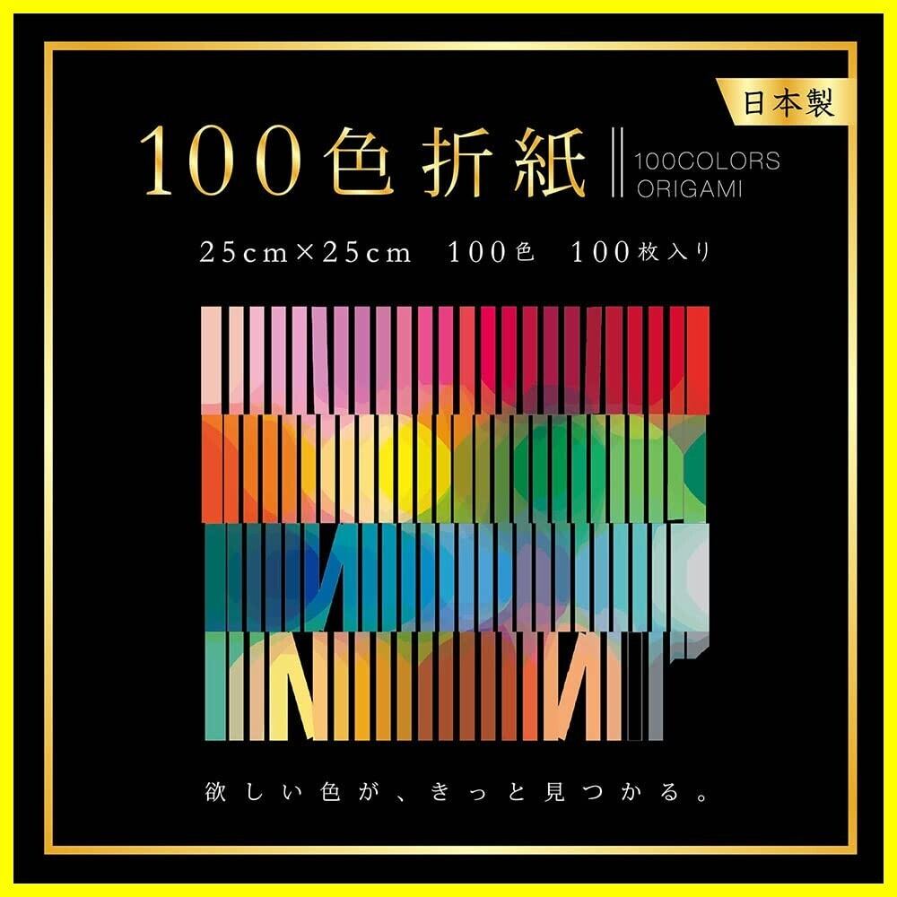 100色のグラデーションを生かした作品作りに。用途多彩な、25cmの大きな折り紙です。裏表紙には100色全ての色の名前が書かれており、見ても楽しめる折り紙です。鶴の折り方付き。