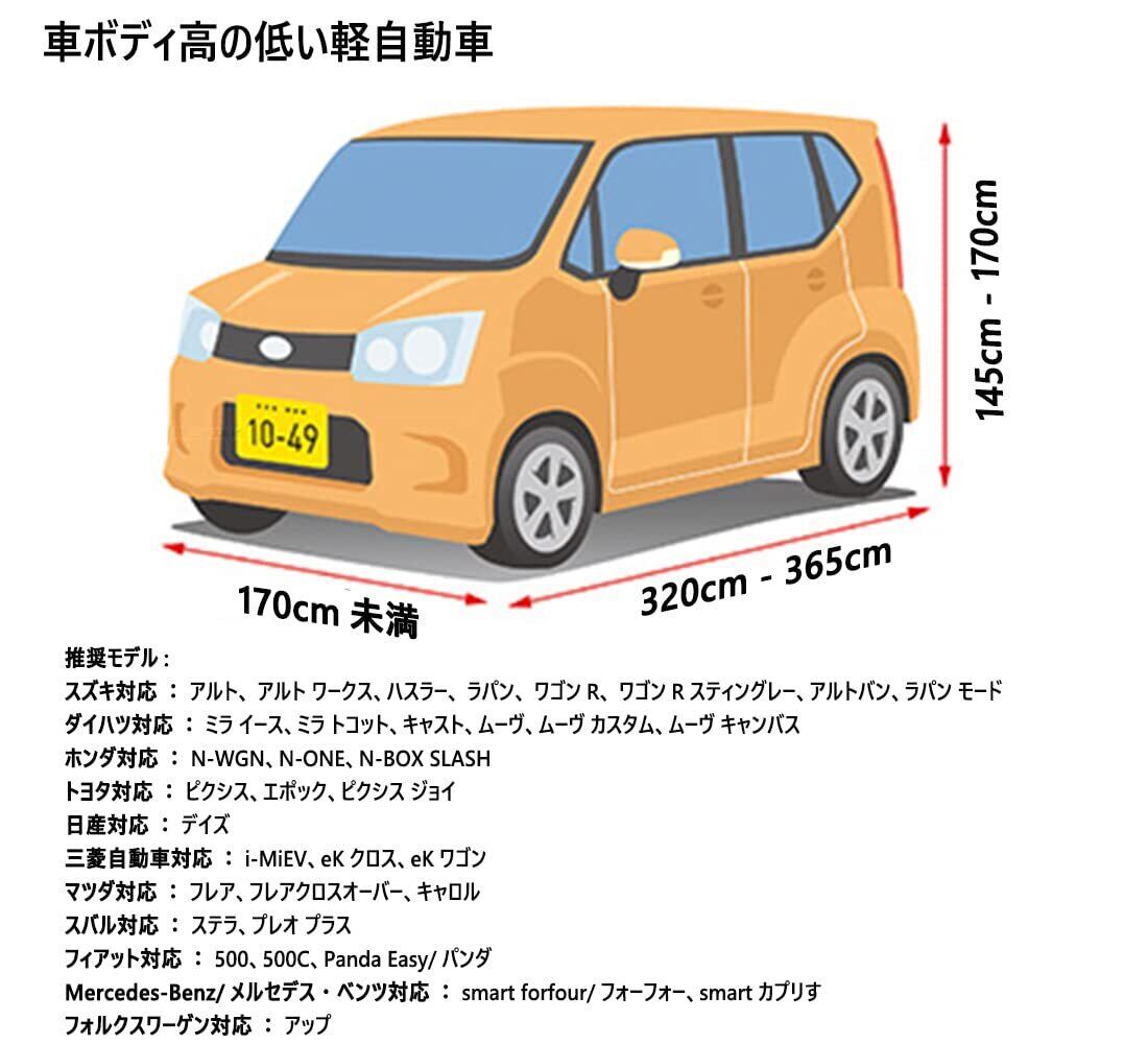 【サイズ】(約)長365cm×幅170cm×高170cm,汎用 サイズ(適合目安:車長 3.2m~3.6m/車幅 1.4m~1.7m/車高1.4m-1.7m),軽自動車專用カバー 一般車