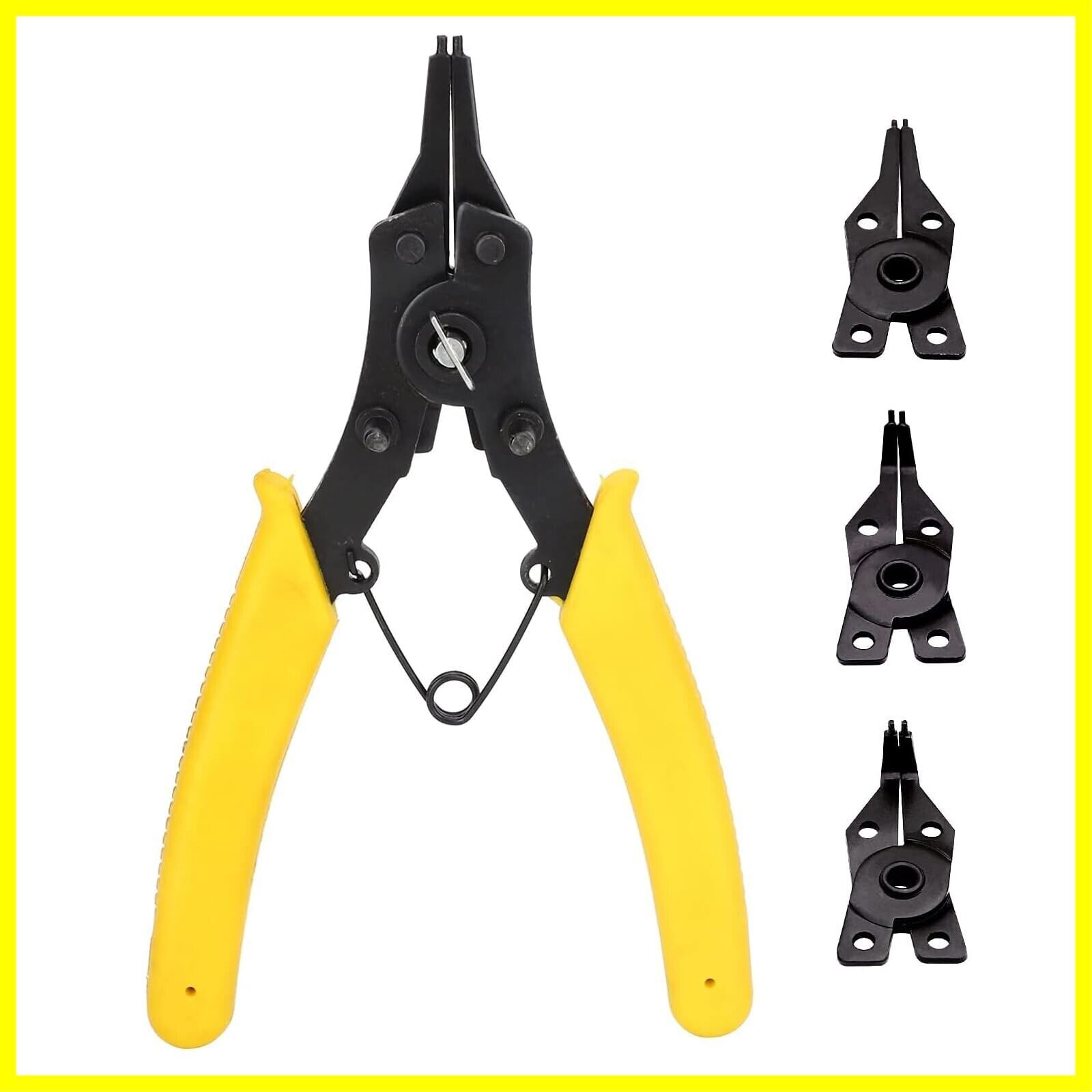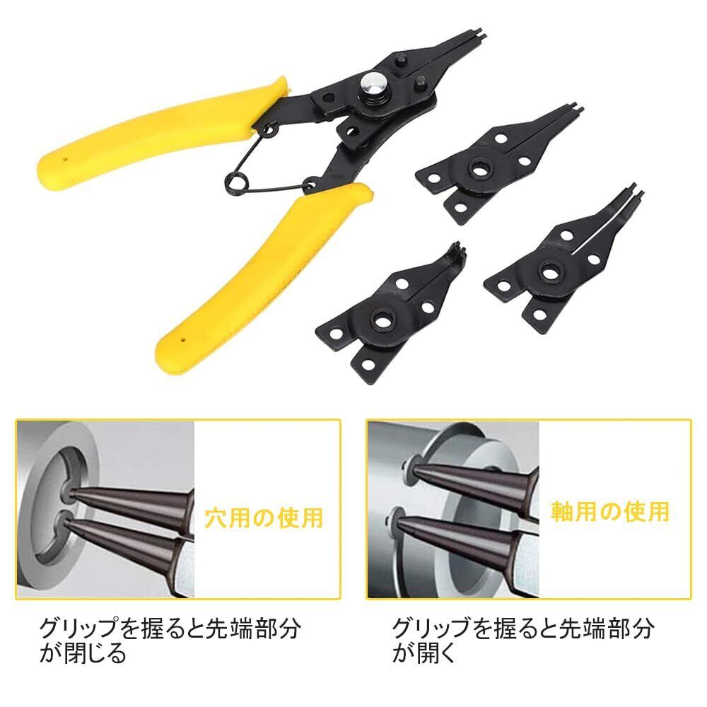スナップリング プライヤー 4本セット 多角度保持リングプライヤー 内部外部サークリッププライヤー 軸・穴兼用 (イエロー)