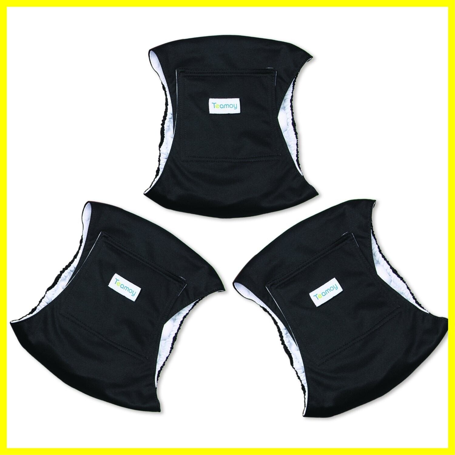 Teamoy 犬マナーベルト 3点セット オス メッシュ裏地 吸収層付き 防水加工生地 ウェストサイズ調整可能 マーキング防止 介護用 お漏らし対策(M,ブラック+ブラック+ブラック)