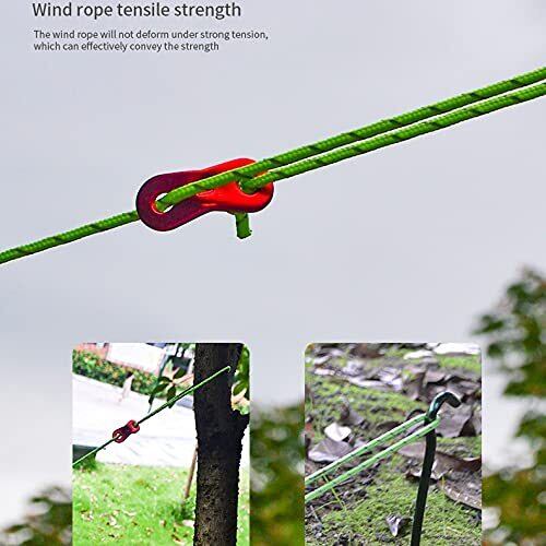 【ガイロープ】径が4mmなので、しっかりしている、200kgまでの荷重に耐えられます;夜間の視認に効果的な反射素材入りテントロープで、昼間でもしっかり目立つようベースカラーは蛍光色となっております。