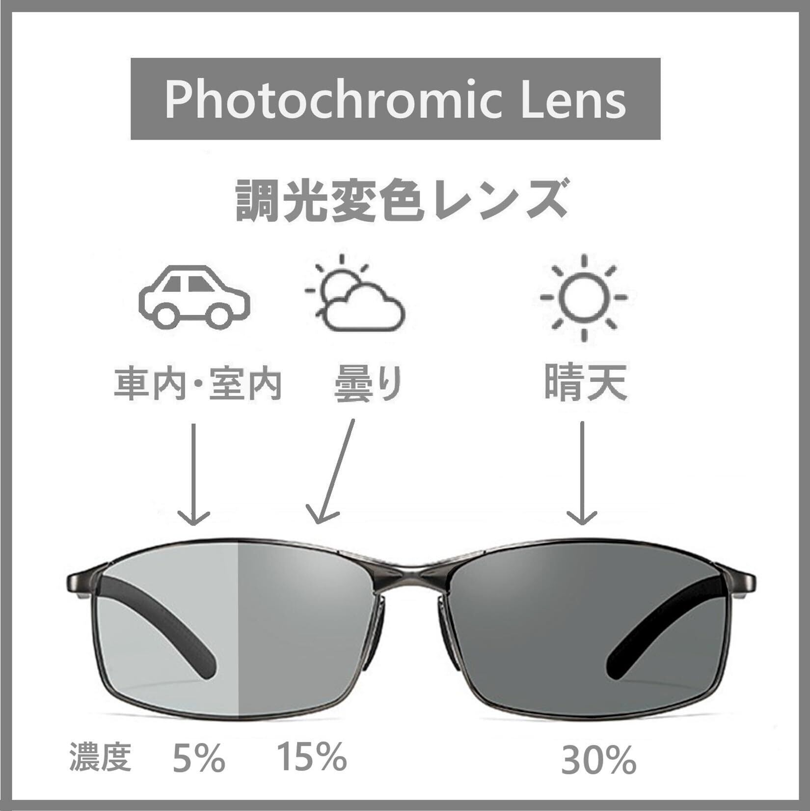 [REONAS] 偏光+変色 サングラス メンズ 運転用 ドライブ 釣り 紫外線 UV400カット 偏光変色2