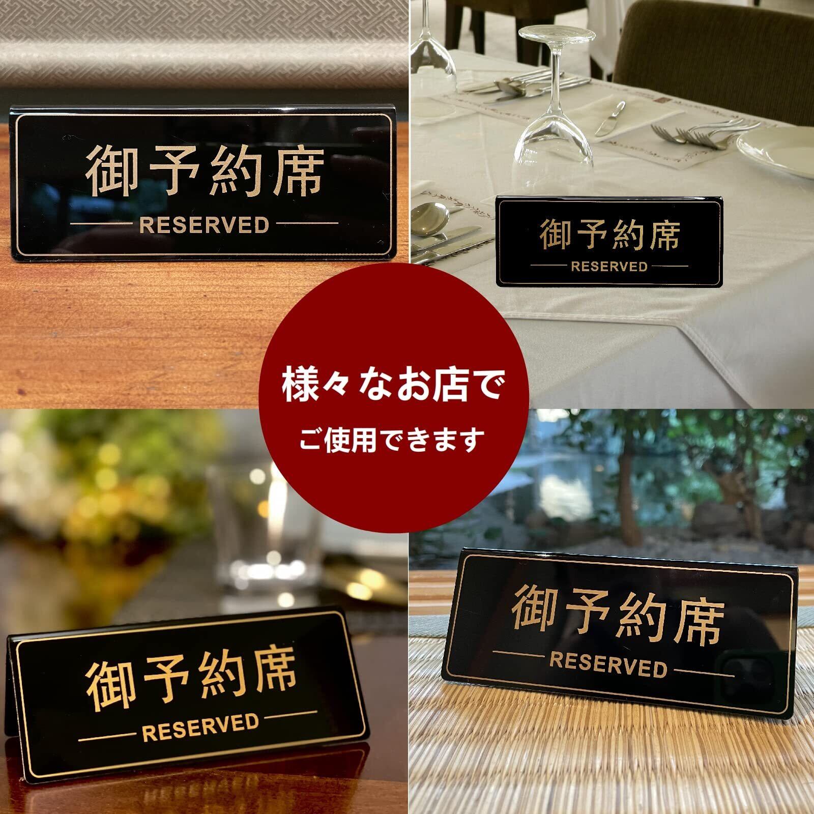 【視認性が良い】日本語「御予約席」と英語「RESERVED]で両面に同時に印刷され、ちょうど良いぐらいの大きさが、遠くからもわかる存在感の高いプレートです。