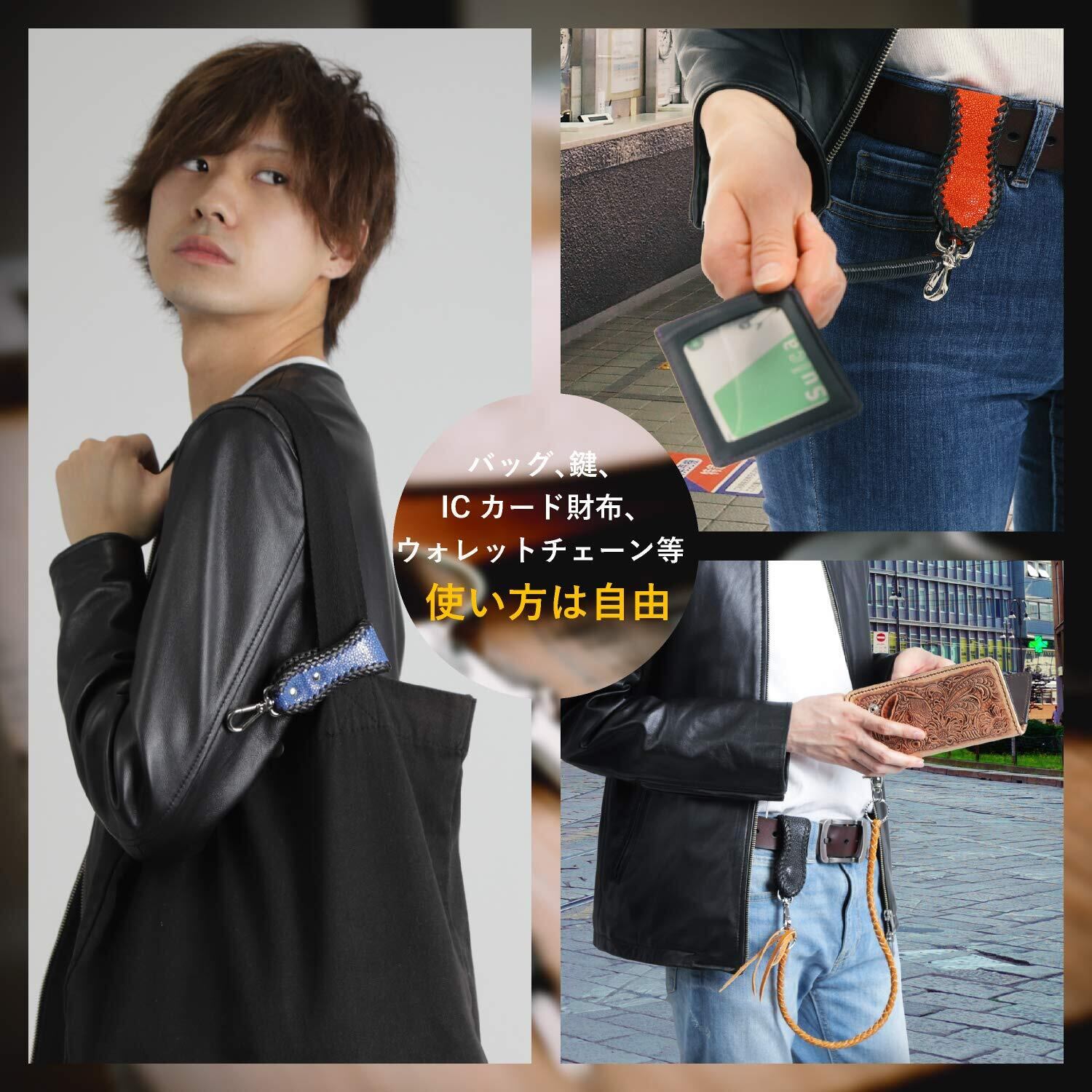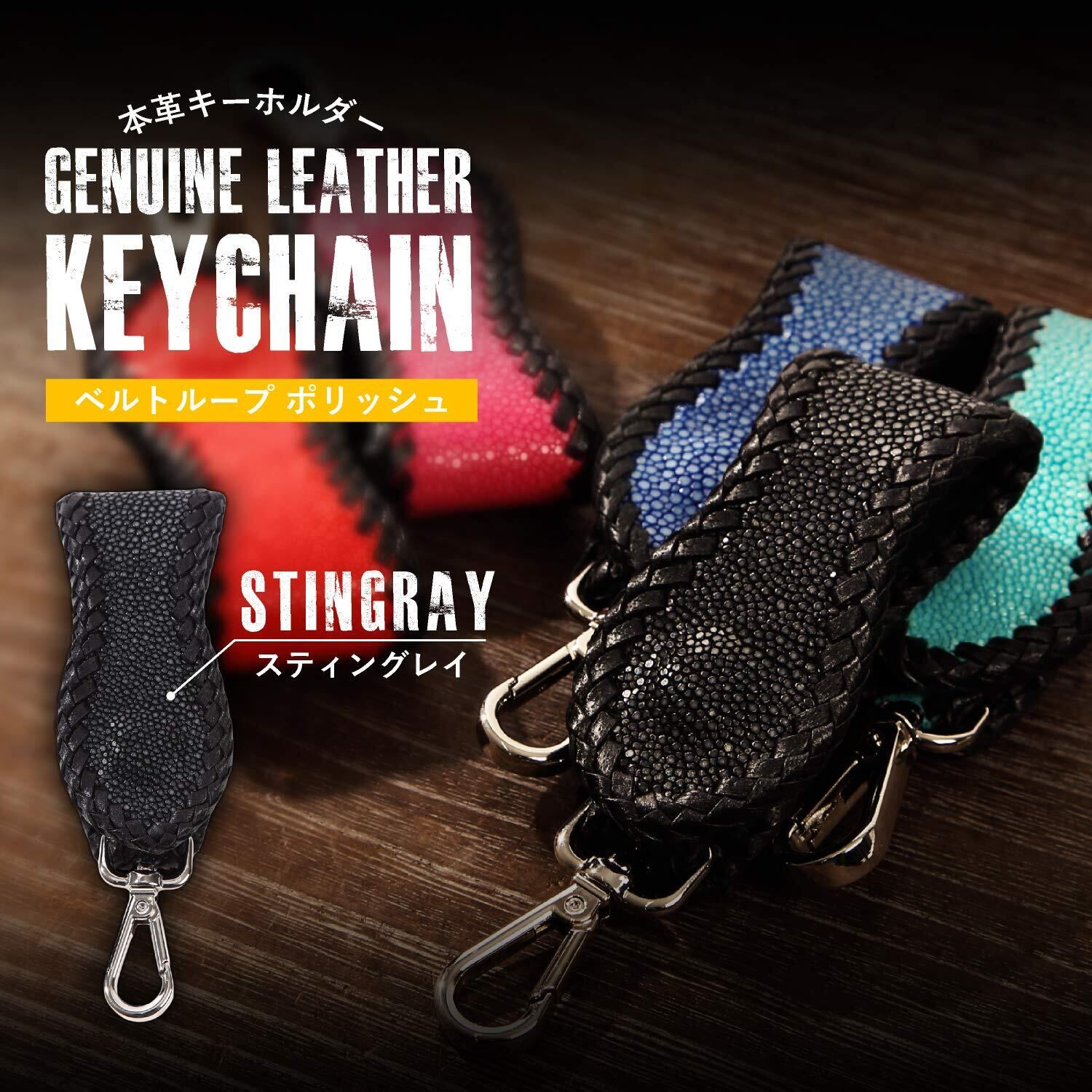 [Saphan su lok] キーホルダー メンズ 革 ベルトループ レザー アウトドア エイ革 スティングレイ 鏡面仕上げ