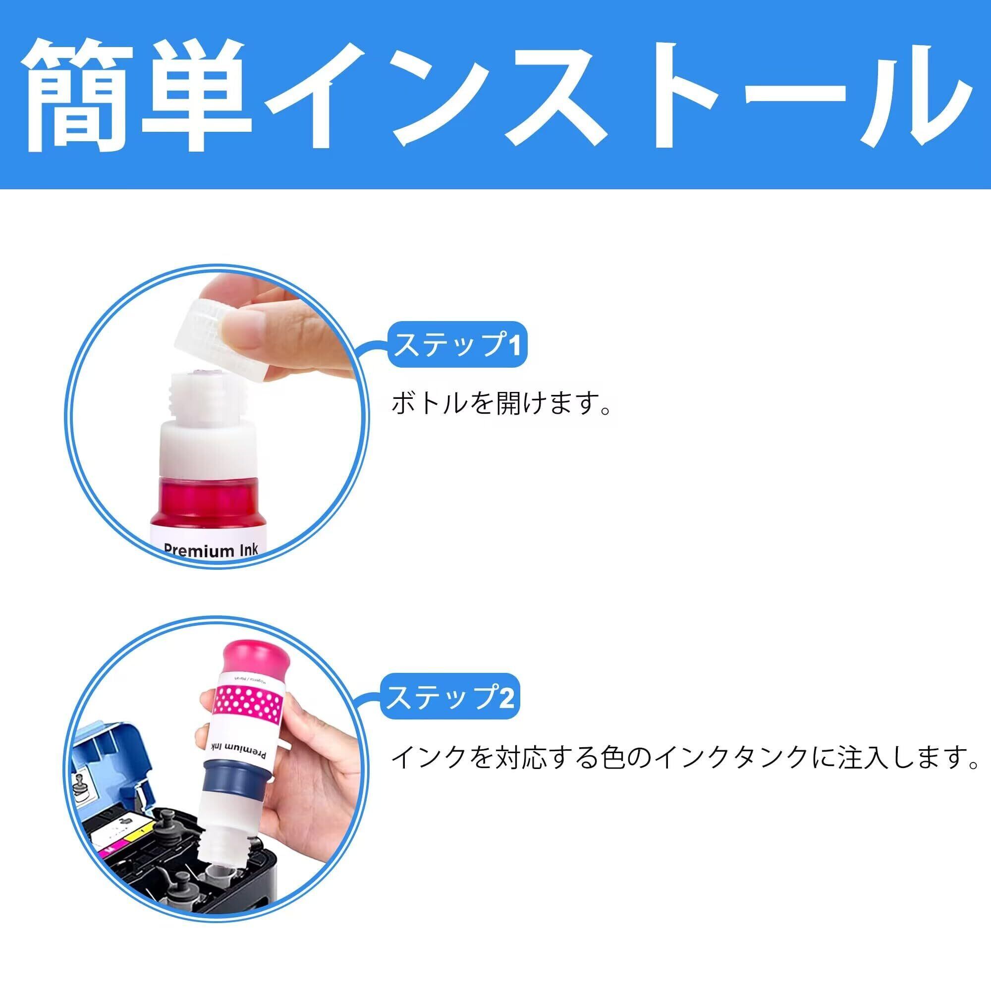【より高いページ収量】超大容量インクボトル、交換サイクルが長くなります。 カラーのインクボトル(70ML)1本で約7700枚の印刷が可能です。(A4 印字率 5%)