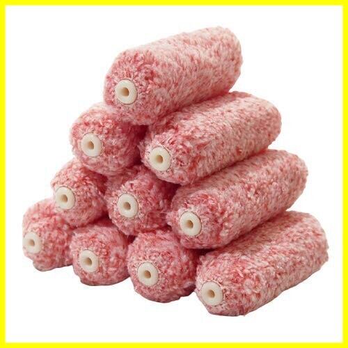 ハケ市 ミニスモール ローラー マイクロファイバー 混毛 レッド 3インチ 11mm 10本 セット 塗装 ペイントローラー