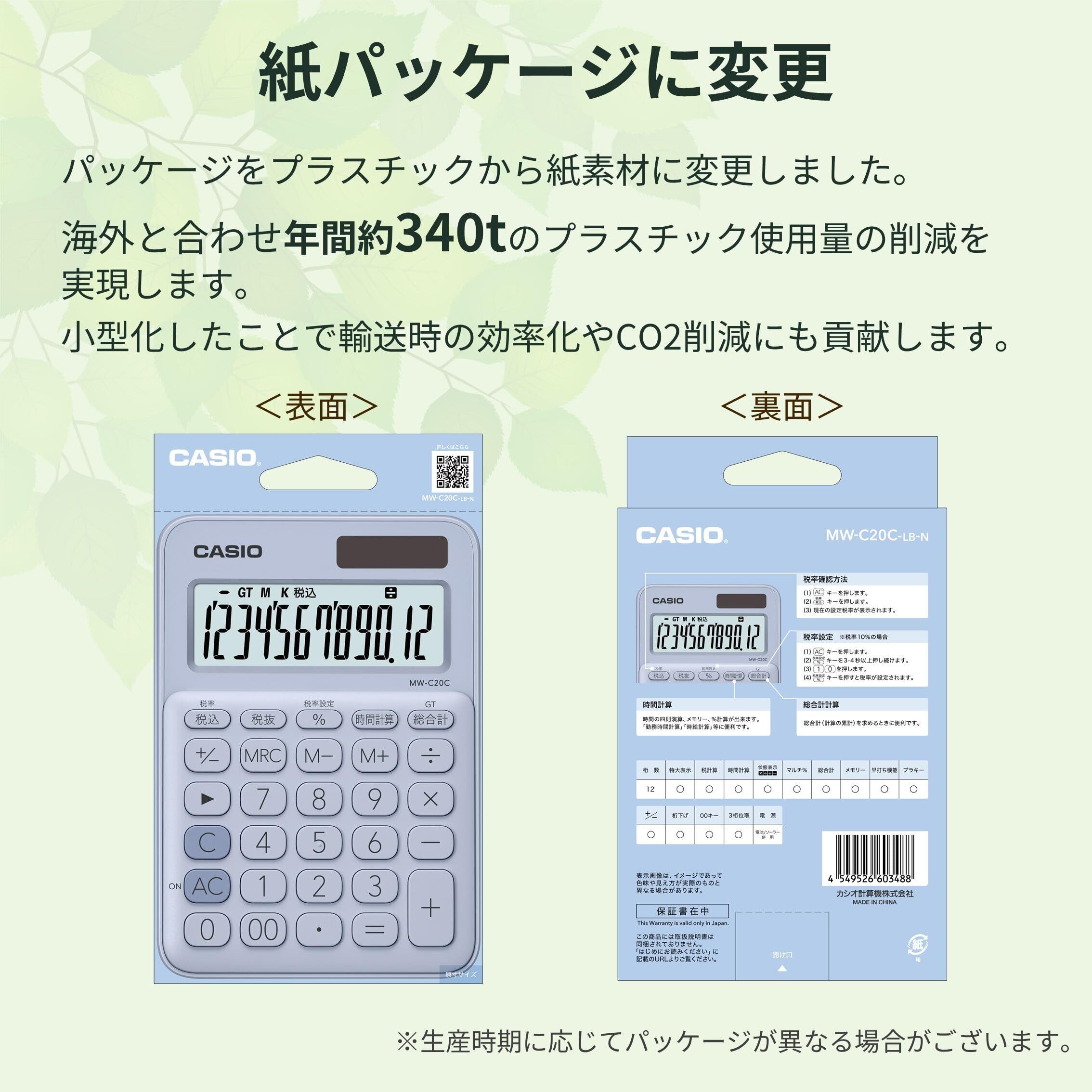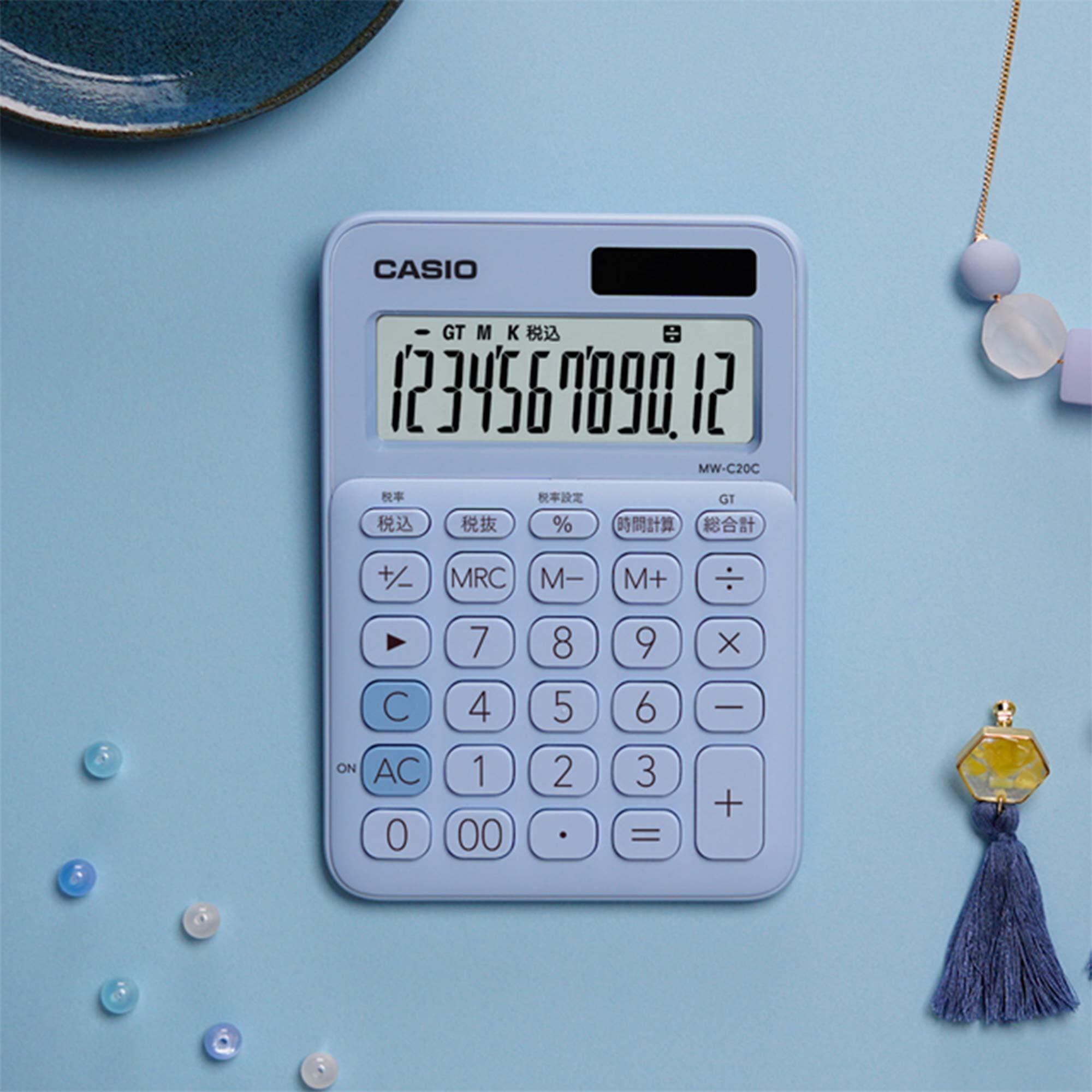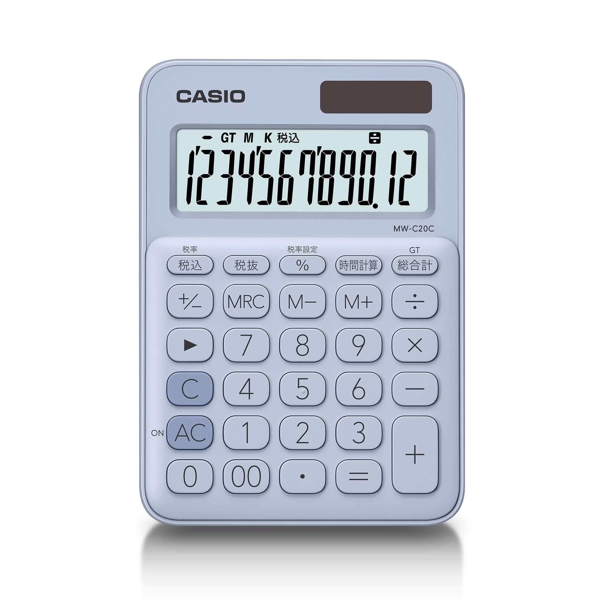 カシオ カラフル電卓 ペールブルー 12桁 ミニジャストタイプ MW-C20C-LB-N