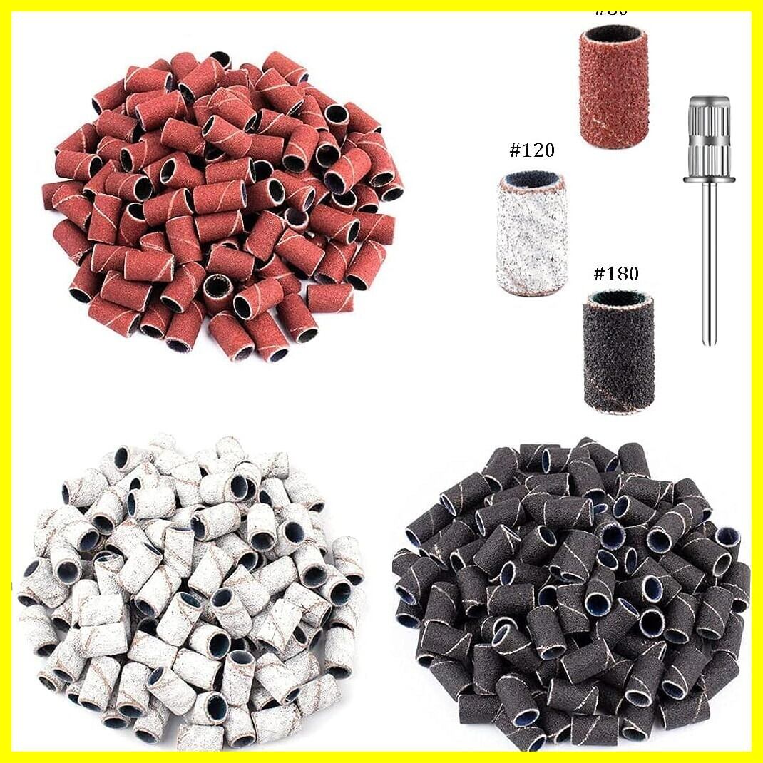 キットのパッケージ:210個のマニキュアサンディングバンド、80#120#180#サンディングバンドバンドの内径は0.31インチ/0.8cm、高さは約0.5インチ/1.27cmです。