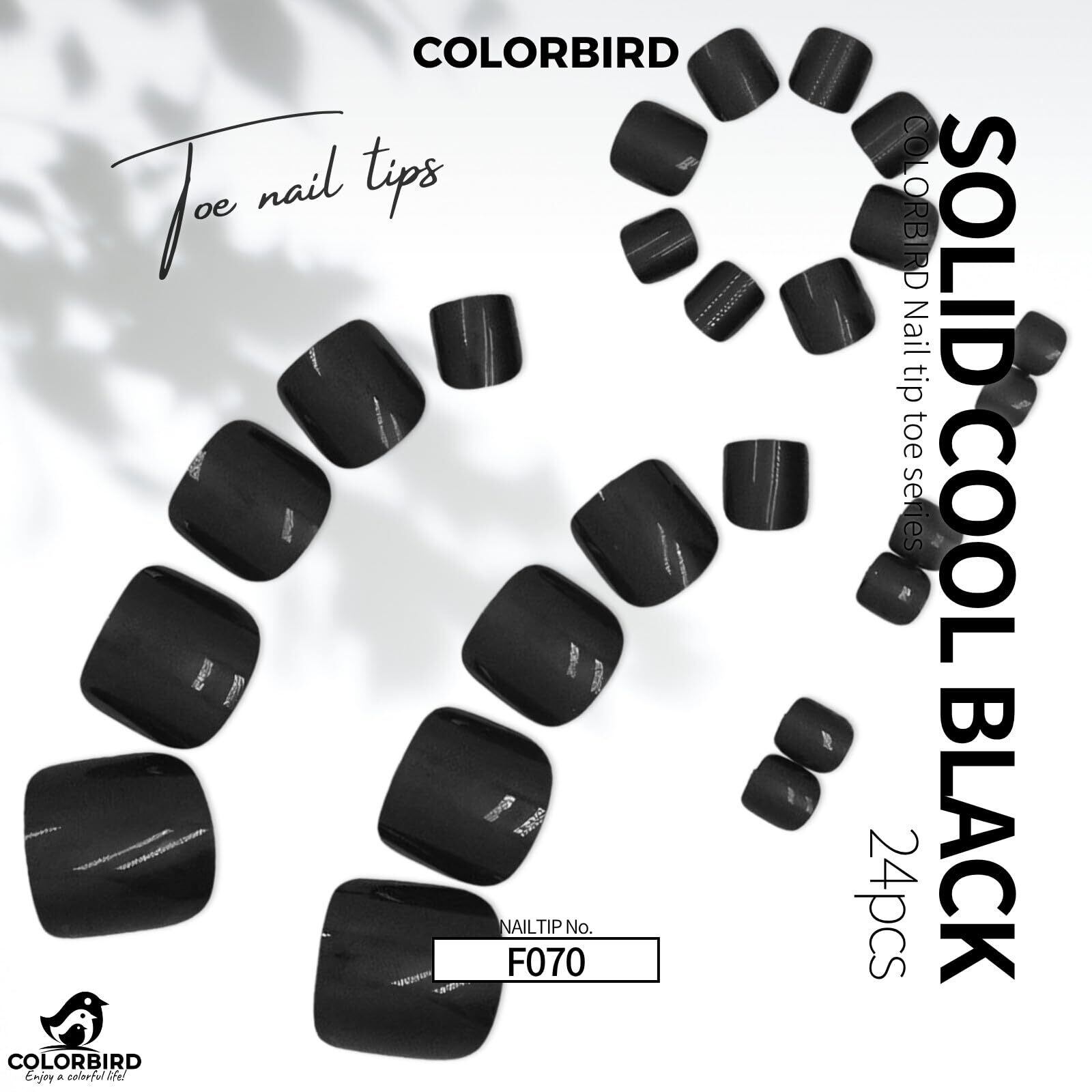COLORBIRD フットネイルチップ 足 24枚 黒 ネイルチップ フット 付け爪 可愛い (F070, 足)