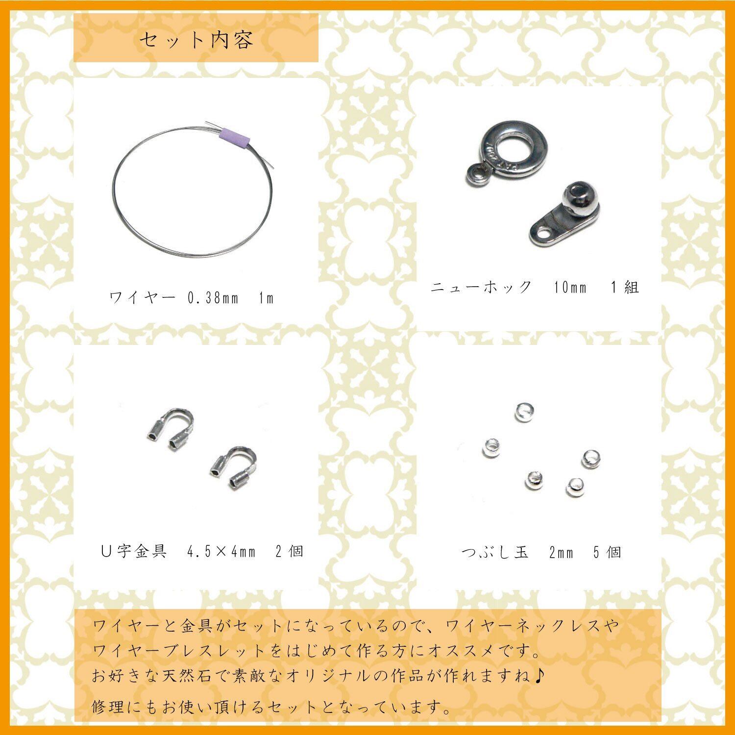 ワイヤーと金具がセットになっているので、ワイヤーネックレスやワイヤーブレスレットを作る方にオススメのキットとなっています。