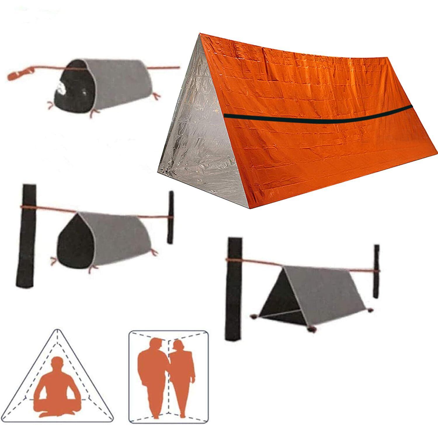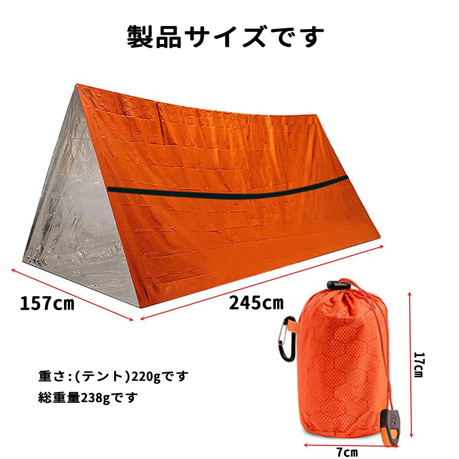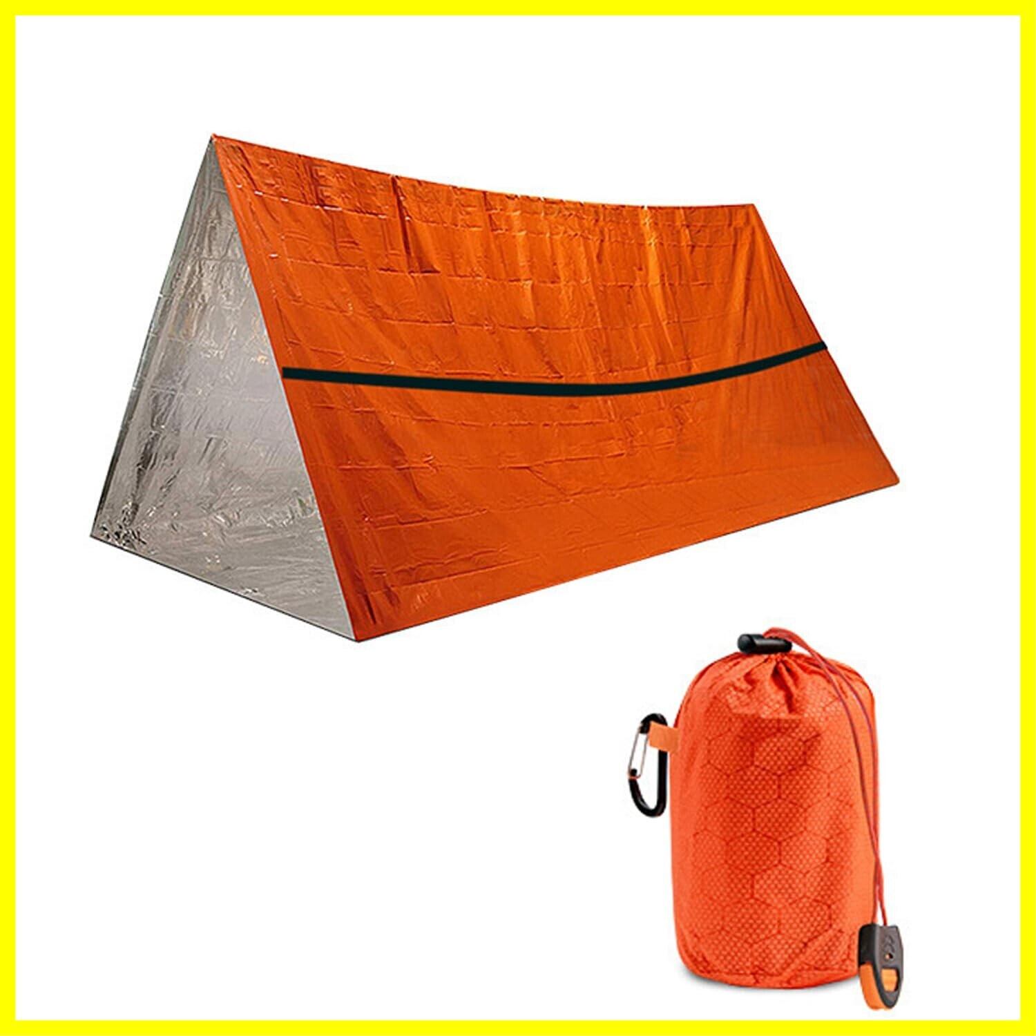 アウトドア 緊急テント エマージェンシーテント 簡易テント 軽量 防水 折りたたみ式 2人用 サバイバルレスキュー アルミブランケット キャンプ 防災 緊急用 防寒保温 オレンジ チューブテント サバイバルシェルター サバイバルテント キャンプ ハイキング