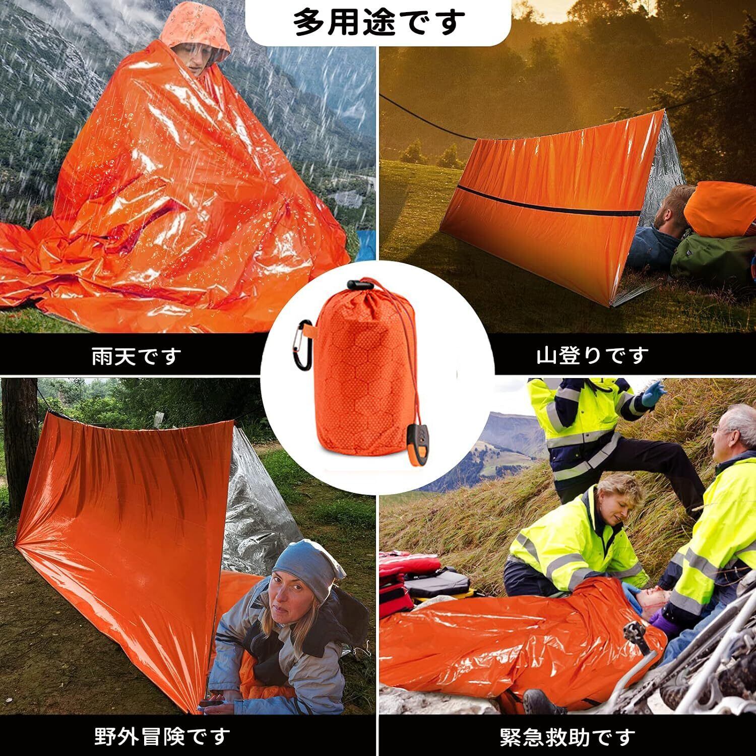 "【使用場合】サバイバルレスキューはキャンプ、スポーツ観戦、ハイキング、緊急時(避難・遭難)、ロッククライミングなどのアウトドアの防寒防災、など様々な用途に適しています。 "
