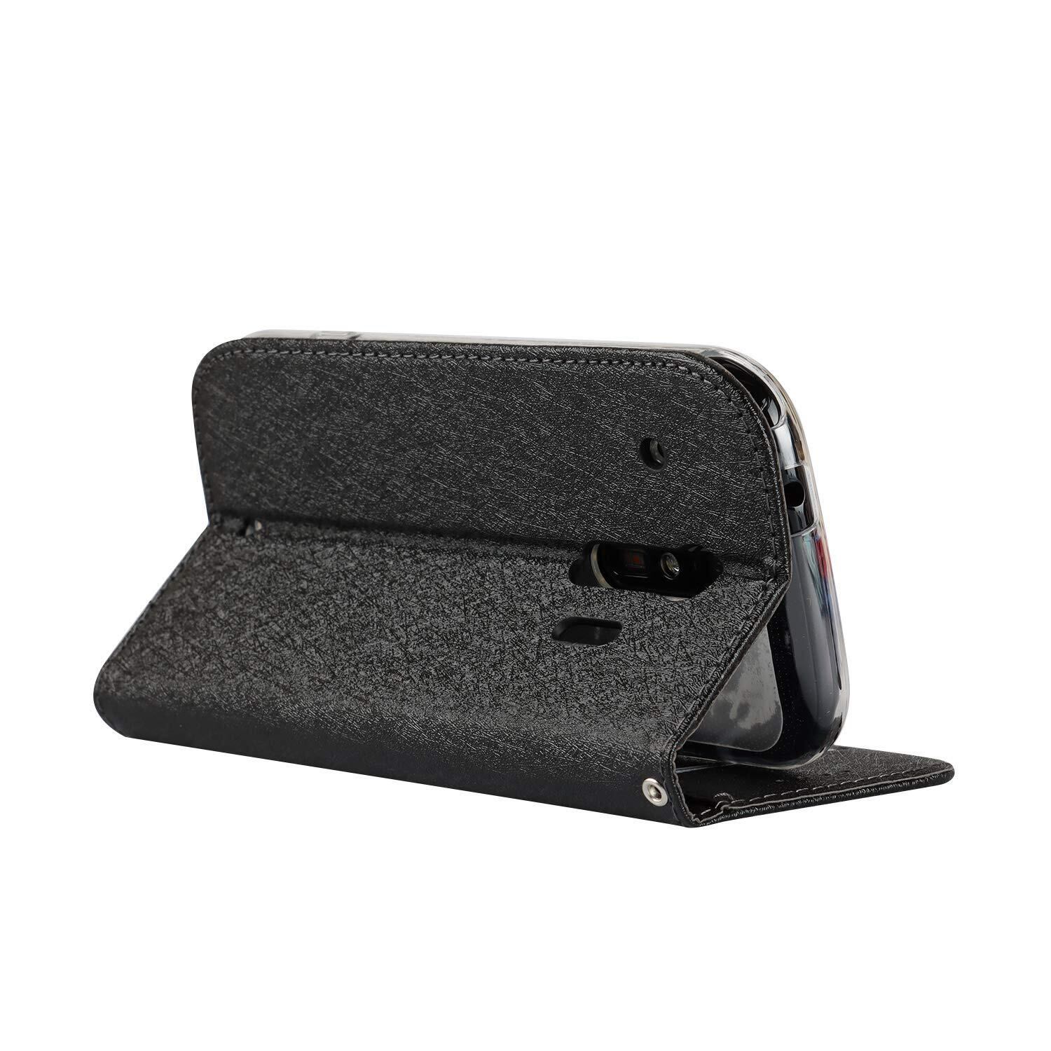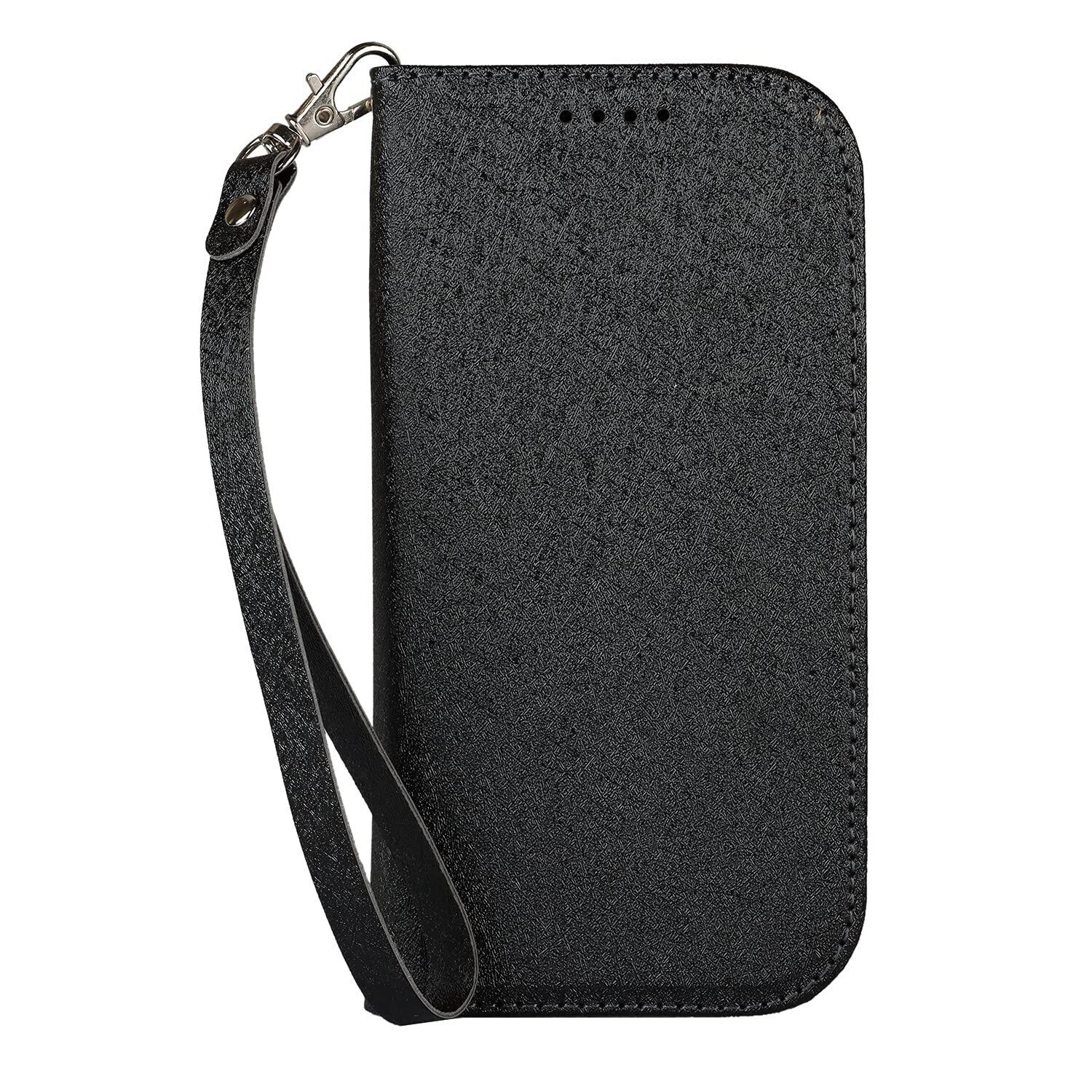 Eastwave For Compatible With Fujitsu 富士通 らくらくスマートフォン me(F-01L)ケース らくらくスマートフォン F-42A ケース 手帳型 ストラップ付き PU皮革 明るい色 内蔵マグネット 携帯カバー カードポケット スタンド機能 便利 ブラック