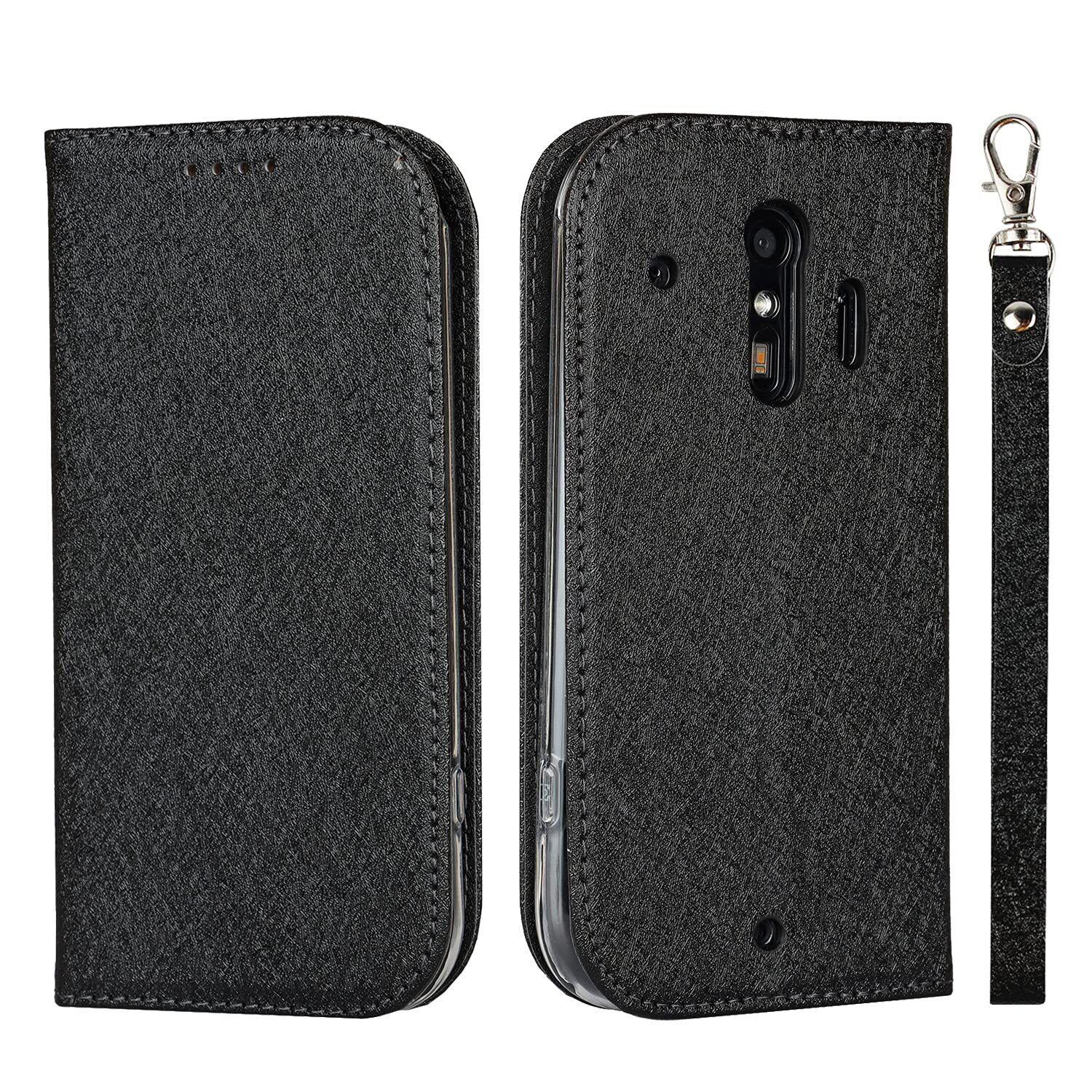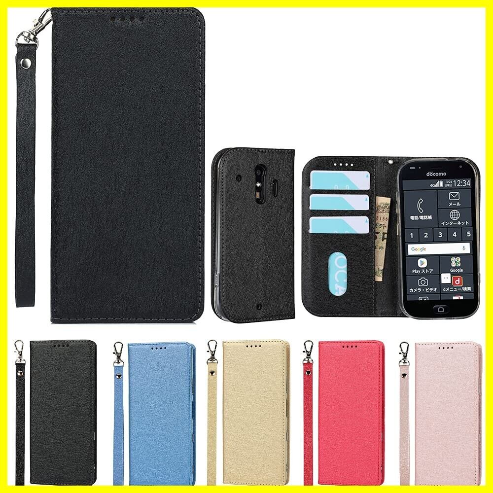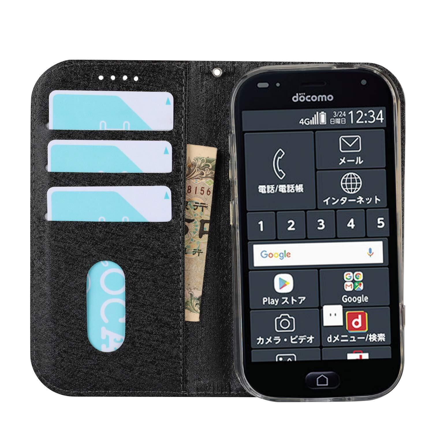 For Compatible With Fujitsu 富士通 らくらくスマートフォン me(F-01L)ケース docomo らくらくスマートフォン F-42A ケース 手帳型 ストラップ付き PU皮革 明るい色 内蔵マグネット 携帯カバー カードポケット スタンド機能 便利 ブラック